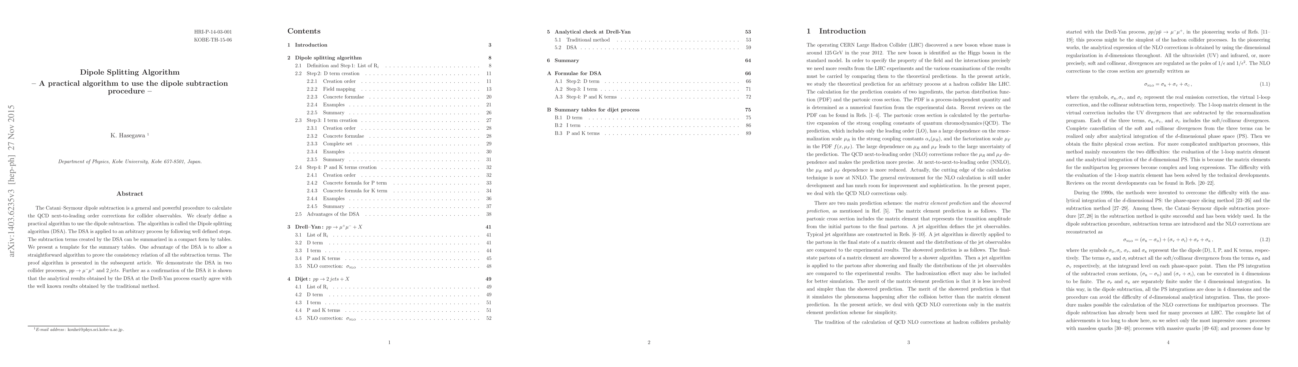 A new algorithm called Dipole Splitting Algorithm (DSA) is introduced to calculate QCD corrections for collider observables, offering a practical and consistent method for subtraction terms.