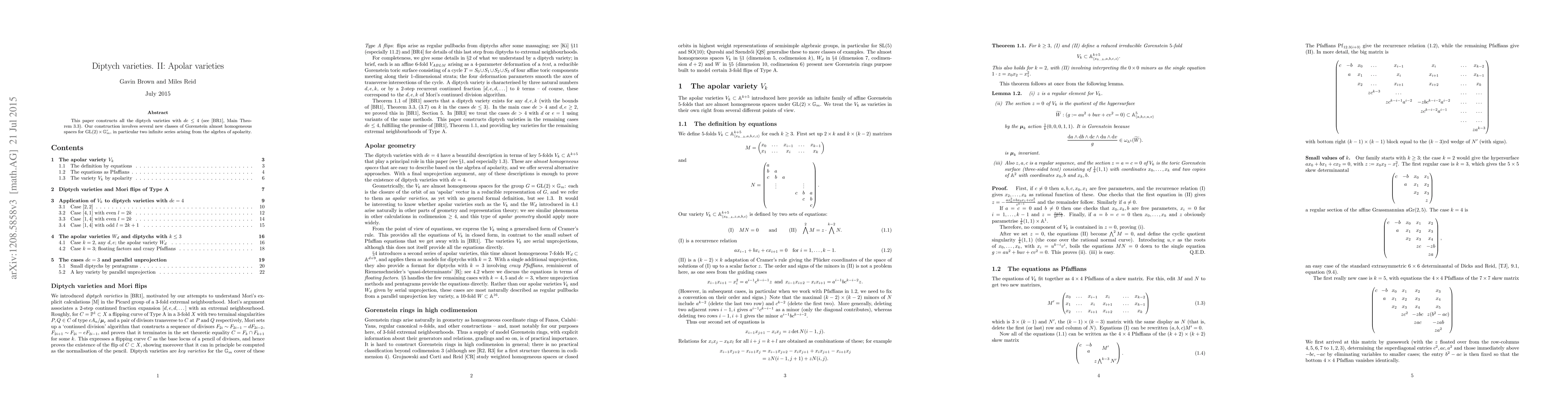 Part I introduced diptych varieties $V_{ABLM}$ and gave a rigorous construction of them in the case $d,e\ge 2$ and $de>4$. Here we prove the existence of $V_{ABLM}$ in all the cases with $de\le4$. At the same time we construct some classes of interesting quasihomogeneous spaces for groups such as $\GL(2)\times\G_m^r$ based on the algebra of polars.