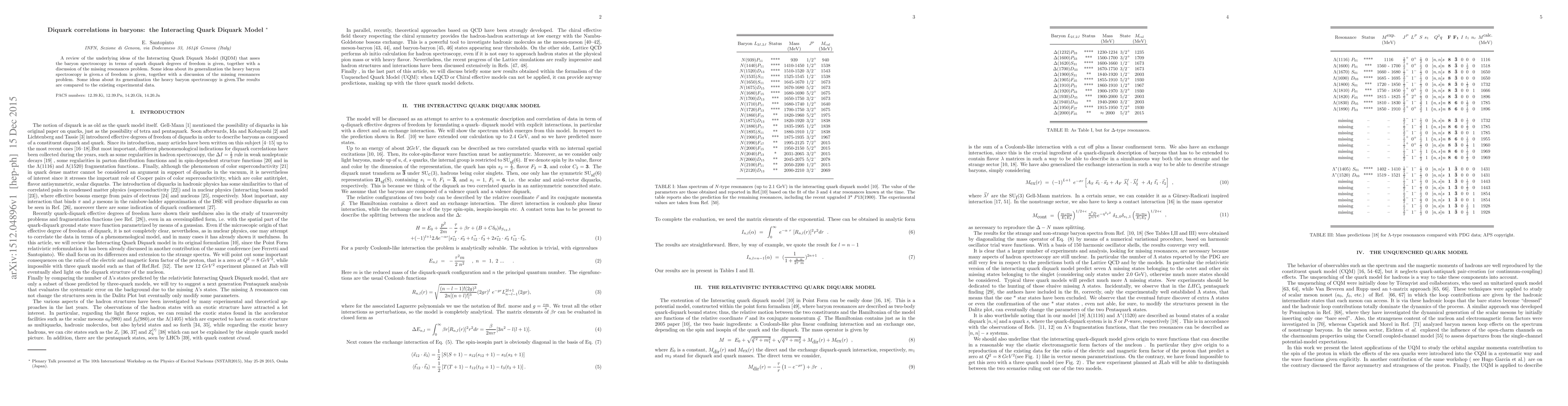 This paper reviews the Interacting Quark Diquark Model (IQDM) for baryon spectroscopy, emphasizing quark diquark correlations, and discusses the "missing resonances" issue. It also explores the model's extension to heavy baryons and compares its predictions with experimental data.