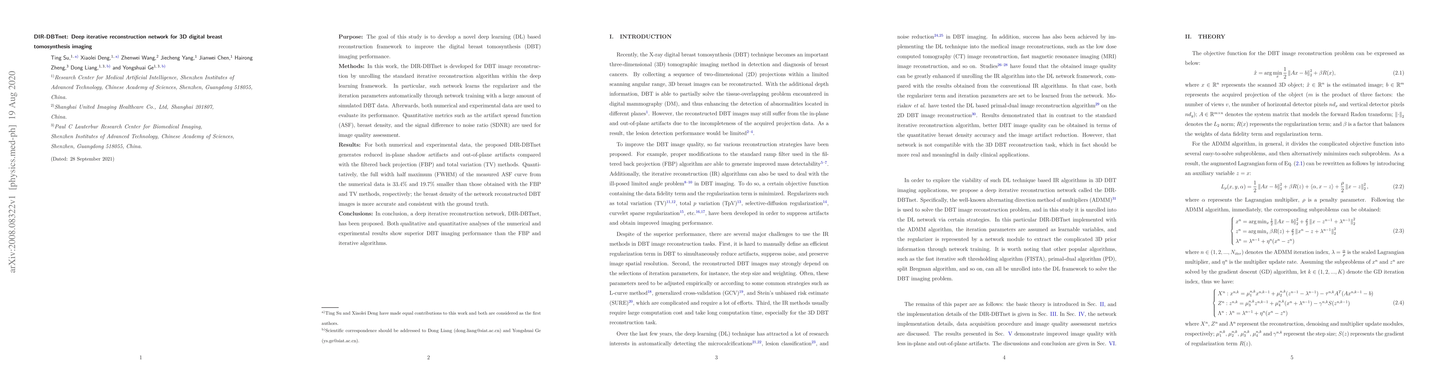 The study introduces DIR-DBTnet, a deep learning framework for enhancing digital breast tomosynthesis imaging. The network outperforms traditional methods in reducing artifacts and improving image quality, as evidenced by superior quantitative metrics.
