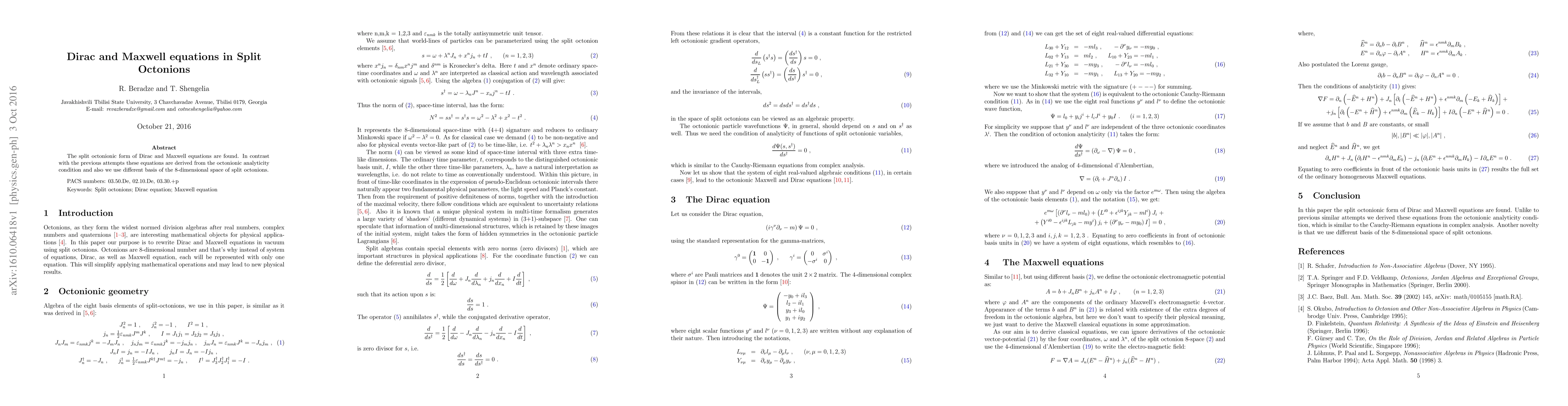 This paper derives split octonionic forms of the Dirac and Maxwell equations based on the octonionic analyticity condition and a novel 8-dimensional basis, differing from previous attempts.