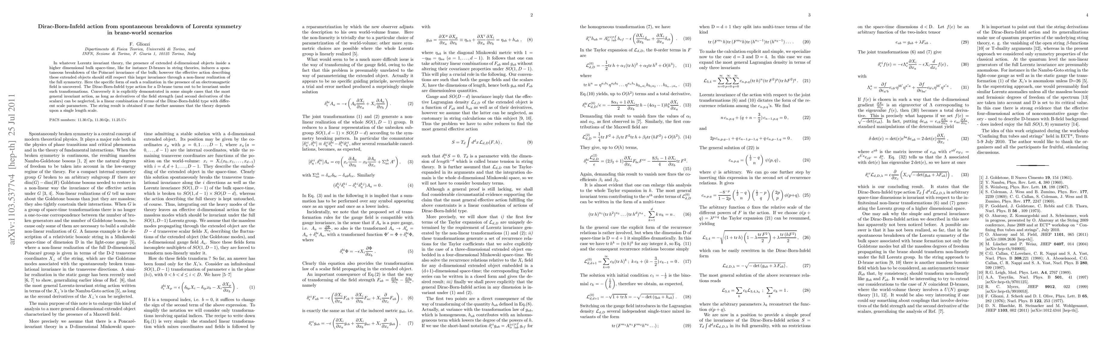 This paper explores how the Dirac-Born-Infeld (DBI) action emerges from the spontaneous breakdown of Lorentz symmetry in brane-world scenarios, demonstrating its invariance under non-linear transformations. It concludes that the DBI action, describing D-branes, is the most general form of the effective action that respects the bulk's Poincaré invariance.