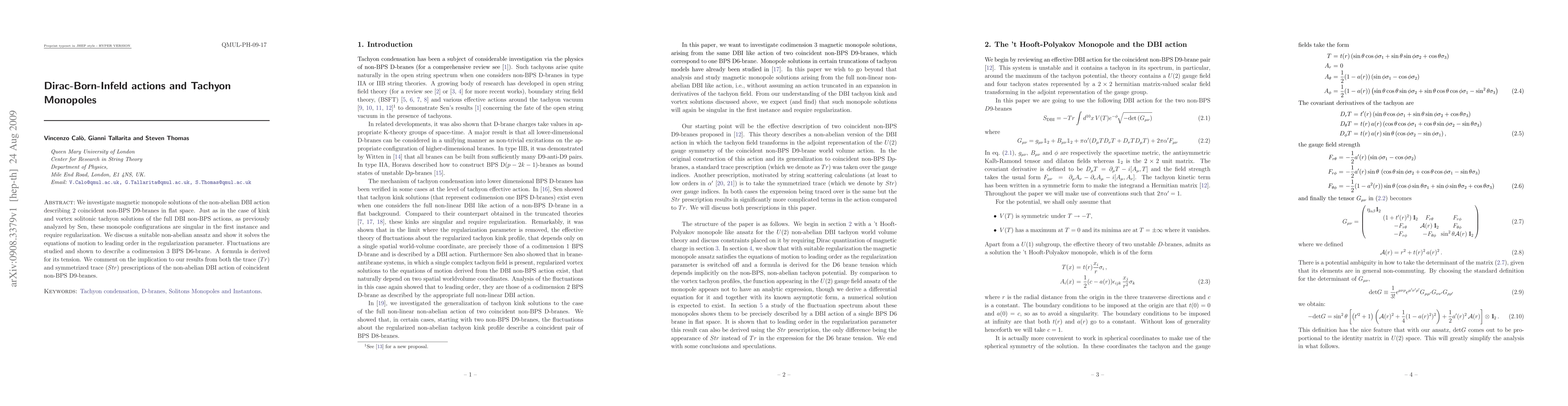 Researchers investigate magnetic monopole solutions of non-abelian Dirac-Born-Infeld actions, finding they describe a codimension 3 BPS D6-brane with a derived formula for its tension.