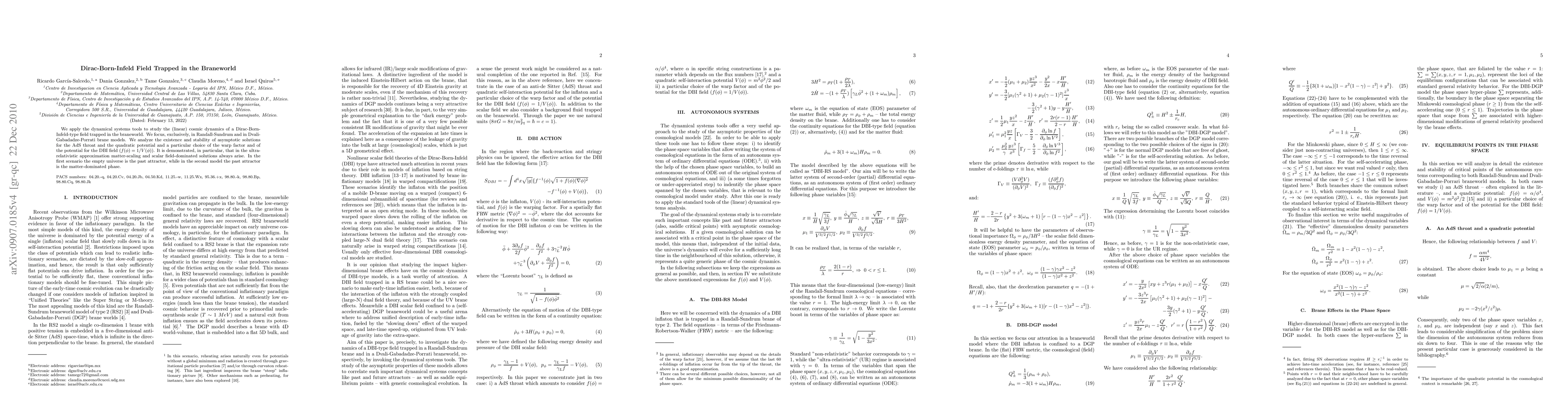 This research paper studies the dynamics of a Dirac-Born-Infeld field trapped in a braneworld, focusing on stability and existence of asymptotic solutions in various models.