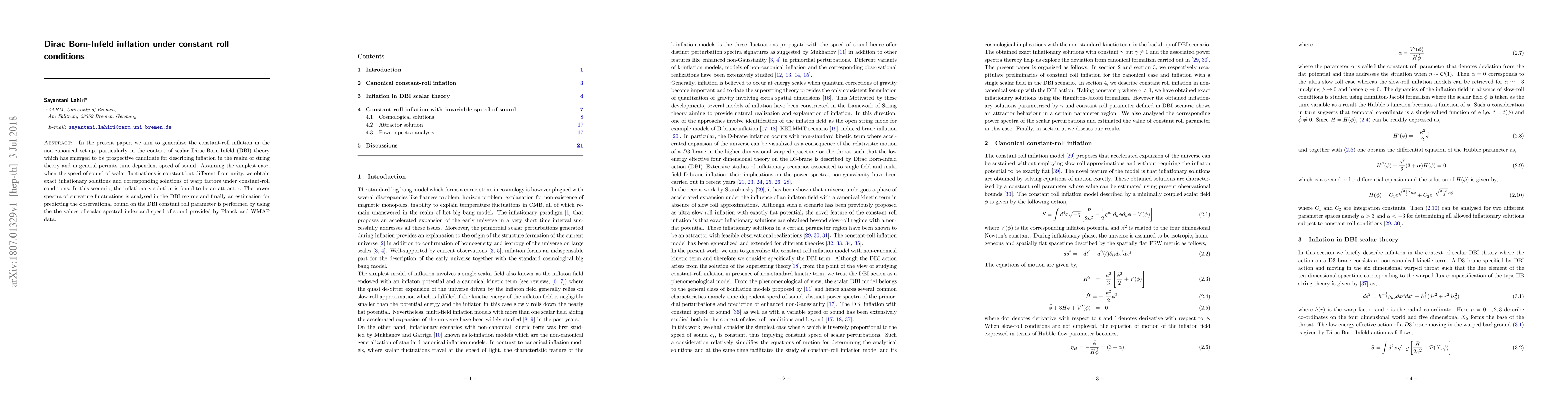 This paper explores constant-roll inflation within the non-canonical Dirac-Born-Infeld (DBI) theory, finding exact inflationary solutions and attractor behavior under constant-roll conditions. It also analyzes the power spectra of curvature fluctuations and estimates observational bounds on the DBI constant roll parameter using Planck and WMAP data.