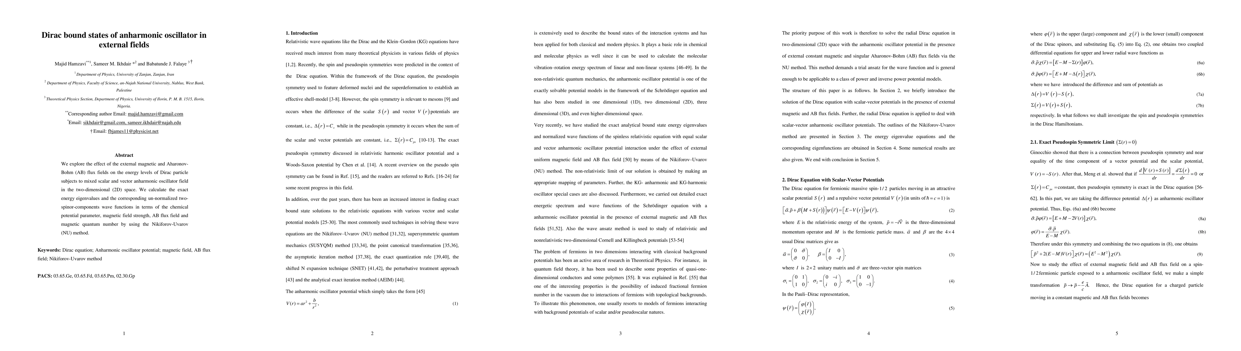 This paper explores how external magnetic and Aharonov-Bohm fields affect energy levels of a Dirac particle in a mixed scalar and vector anharmonic oscillator field, calculating exact energy eigenvalues and wave functions using the Nikiforov-Uvarov method.