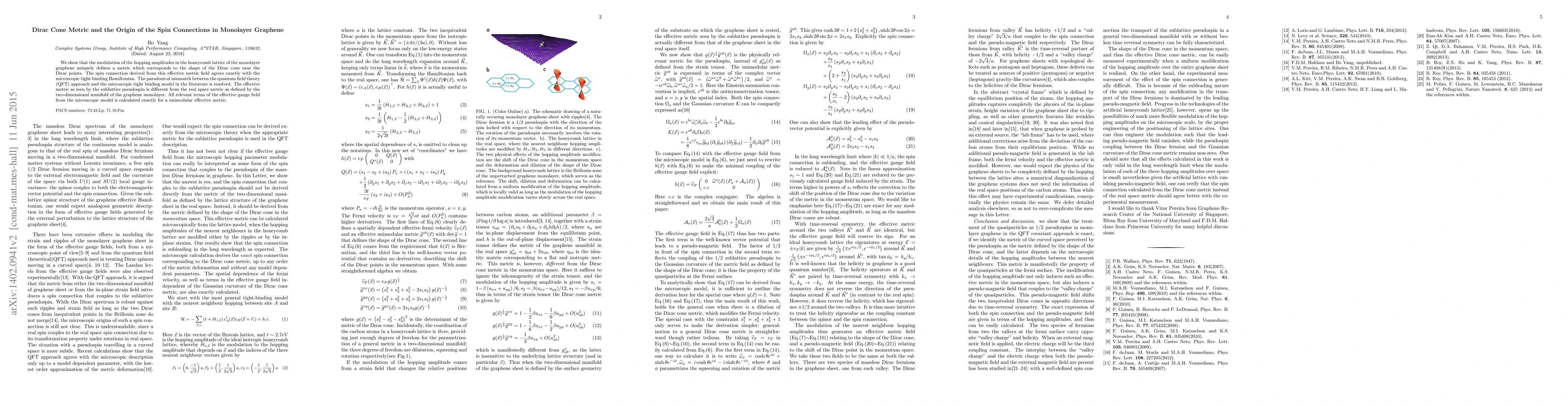 Researchers have found that the hopping amplitudes in graphene define a metric corresponding to the shape of the Dirac cone, which affects the spin connections in the material.