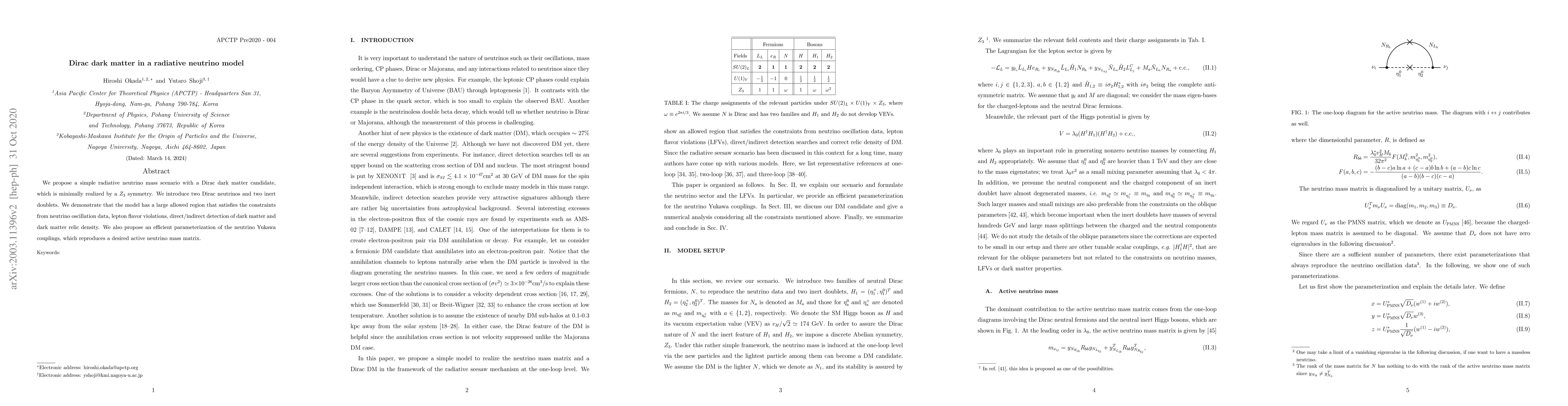 This paper proposes a radiative neutrino mass model with Dirac dark matter, utilizing a Z3 symmetry and introducing two Dirac neutrinos and two inert doublets. The model satisfies various constraints and offers an effective parameterization for the neutrino Yukawa couplings, ensuring compatibility with observed neutrino oscillation data and dark matter properties.