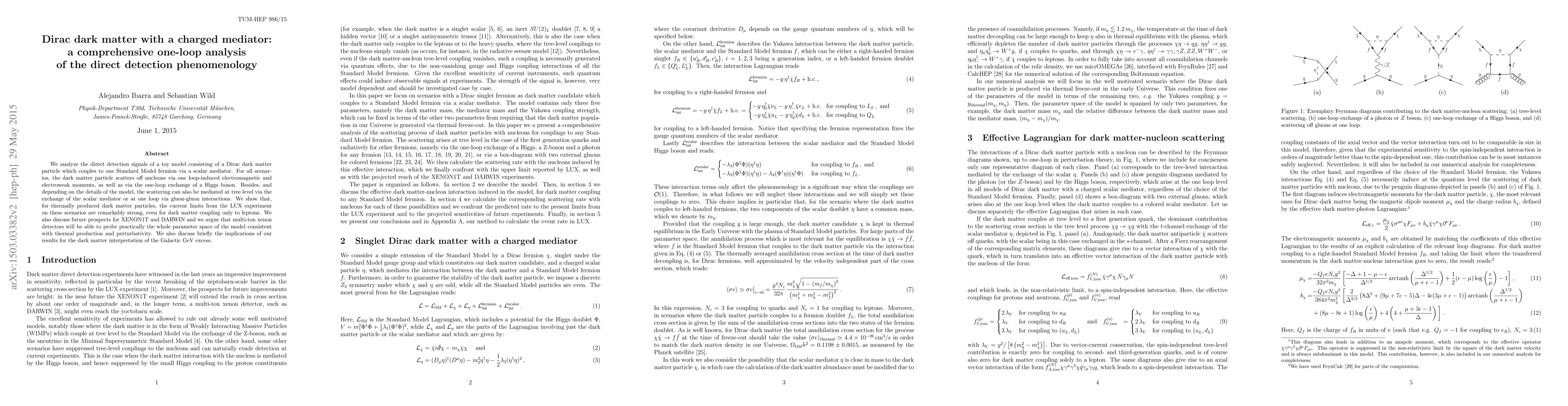 This paper investigates the direct detection of Dirac dark matter in a model where it interacts via a charged scalar mediator, analyzing one-loop effects and comparing with current and future experimental limits. The study finds that current experiments like LUX already impose strong constraints, and future detectors like XENON1T and DARWIN will further probe the model's parameter space.