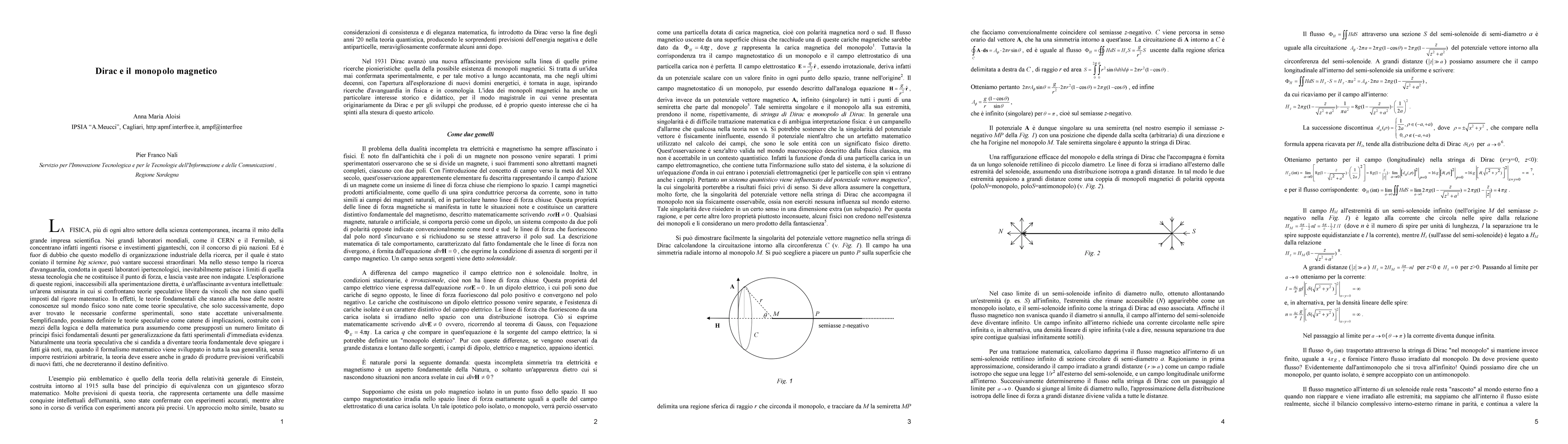 Summary: In 1931, Dirac predicted the existence of magnetic monopoles based on mathematical consistency and quantum mechanics, showcasing his view on the interplay between physics and mathematics rather than empirical evidence. Dirac nel 1931 predisse l'esistenza dei monopoli magnetici basandosi sulla consistenza matematica e sulla generalizzazione della meccanica quantistica, illustrando la sua visione del rapporto tra fisica e matematica.