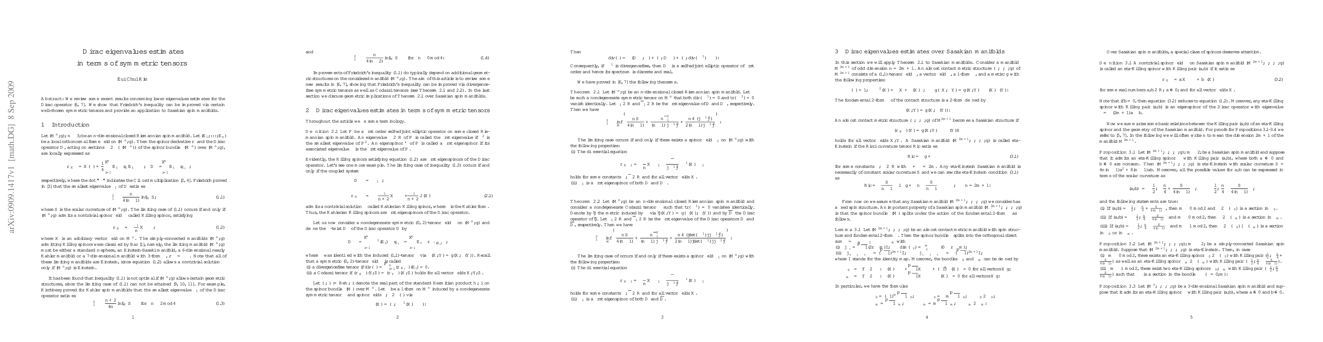 Summary: This paper reviews recent advancements in lower eigenvalue estimates for the Dirac operator, demonstrating that Friedrich's inequality can be enhanced using specific symmetric tensors, with an application to Sasakian spin manifolds.