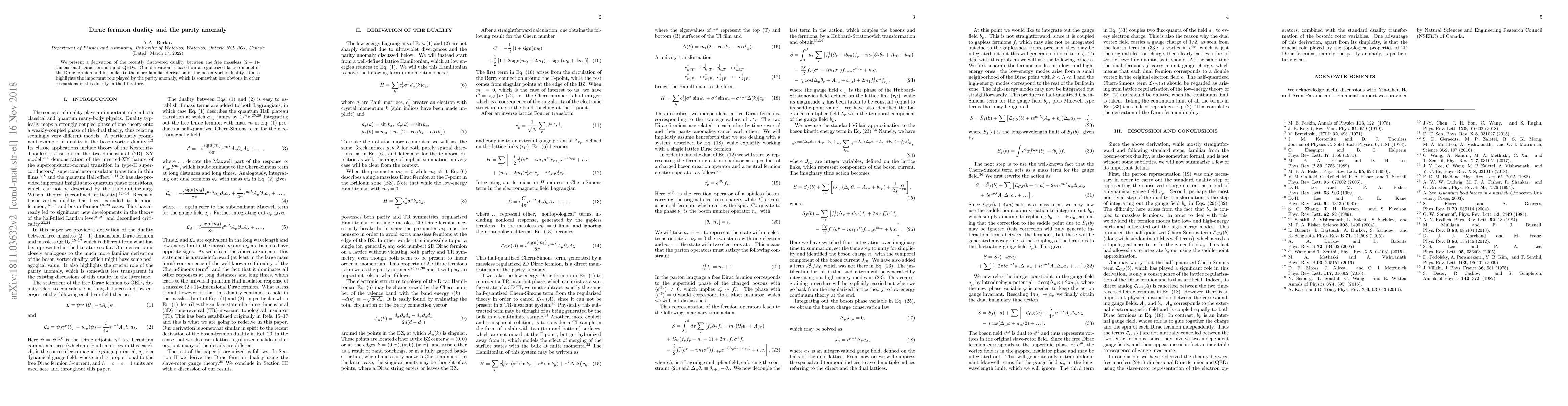 We present a derivation of the recently discovered duality between the free massless (2+1)-dimensional Dirac fermion and QED$_3$. Our derivation is based on a regularized lattice model of the Dirac fermion and is similar to the more familiar derivation of the boson-vortex duality. It also highlights the important role played by the parity anomaly, which is somewhat less obvious in other discussions of this duality in the literature.