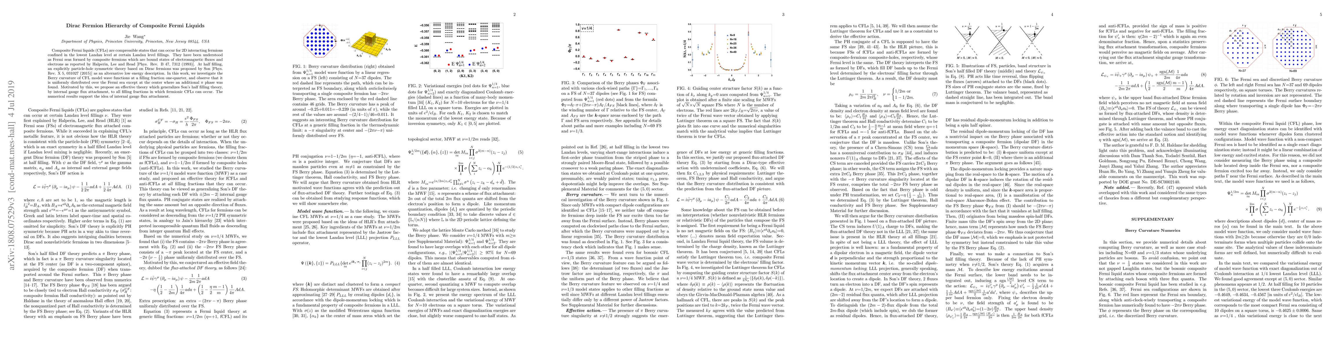 This paper investigates the Berry curvature in composite Fermi liquids at quarter filling, revealing a unique $\pi$ phase at the center, and proposes an effective theory extending Son's Dirac fermion model to all filling fractions through internal gauge flux attachment, supported by numerical results.