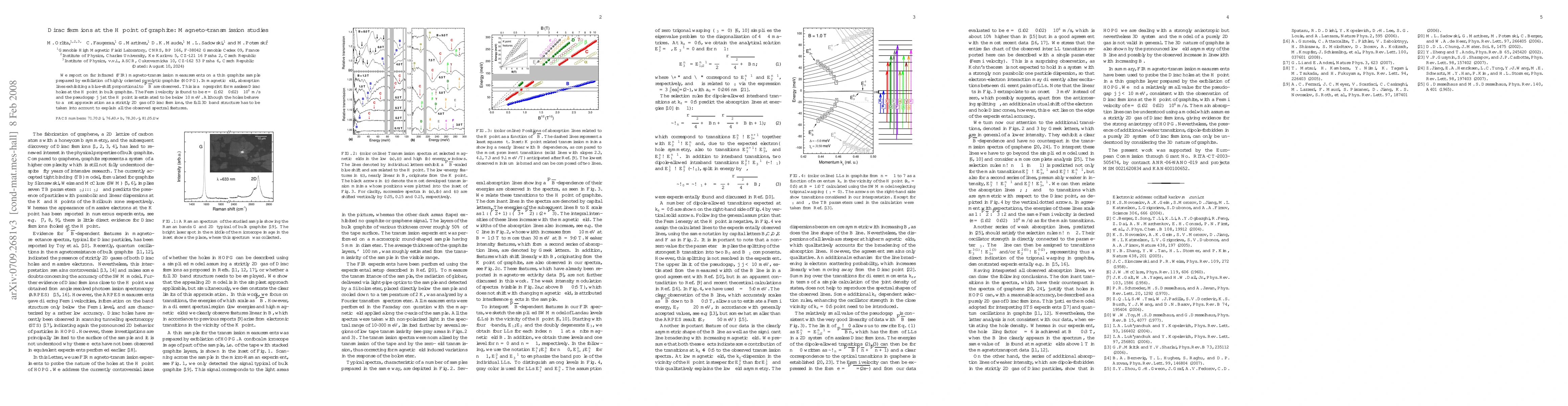 This study uses far infrared magneto-transmission to investigate massless Dirac holes at the H point in graphite, revealing a blue-shift proportional to sqrtB. The Fermi velocity is determined to be c* = 1.02 x 10^6 m/s, and a pseudogap below 10 meV is estimated, highlighting the need to consider the full 3D band structure for complete spectral feature explanation.