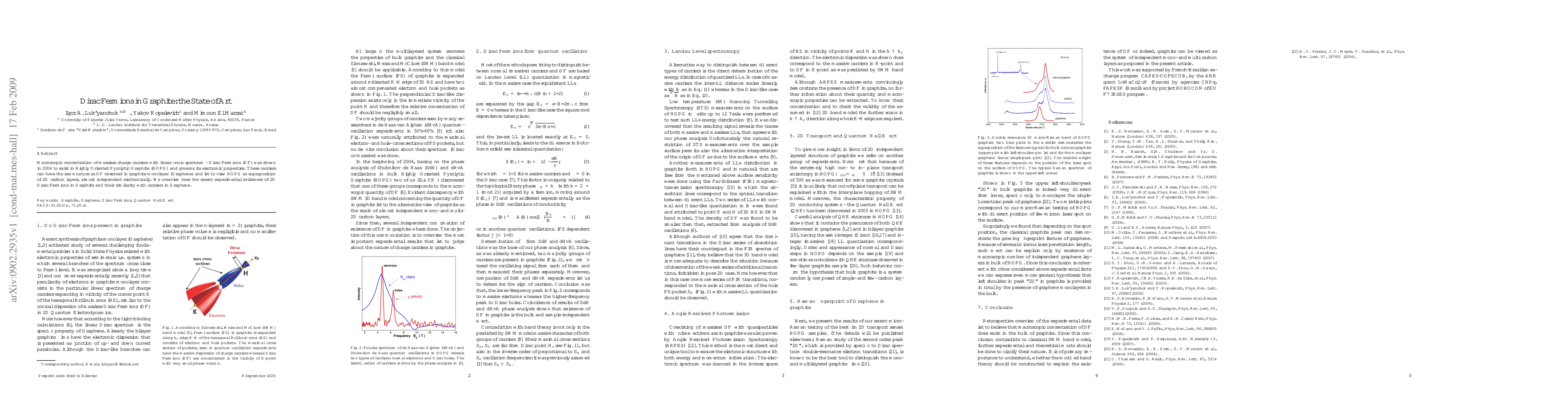 Summary: This paper reviews recent experimental findings on Dirac Fermions in highly oriented pyrolytic graphite, highlighting their linear energy spectrum and comparing their behavior to those in graphene, suggesting graphite can be seen as a superposition of nearly independent 2D carbon layers.