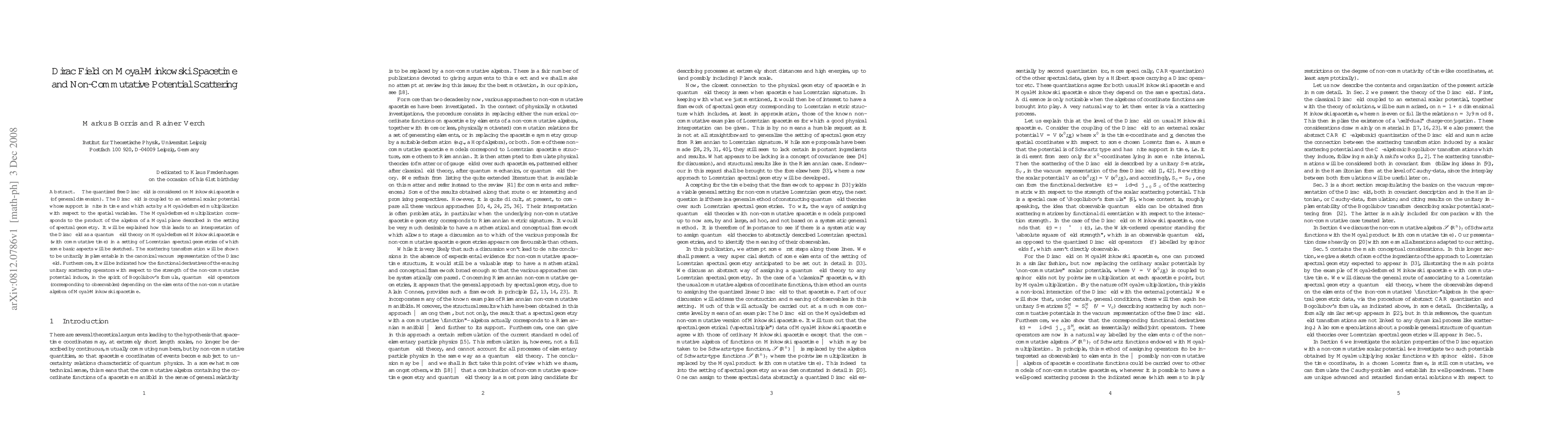 The quantized free Dirac field is considered on Minkowski spacetime (of general dimension). The Dirac field is coupled to an external scalar potential whose support is finite in time and which acts by a Moyal-deformed multiplication with respect to the spatial variables. The Moyal-deformed multiplication corresponds to the product of the algebra of a Moyal plane described in the setting of spectral geometry. It will be explained how this leads to an interpretation of the Dirac field as a quantum field theory on Moyal-deformed Minkowski spacetime (with commutative time) in a setting of Lorentzian spectral geometries of which some basic aspects will be sketched. The scattering transformation will be shown to be unitarily implementable in the canonical vacuum representation of the Dirac field. Furthermore, it will be indicated how the functional derivatives of the ensuing unitary scattering operators with respect to the strength of the non-commutative potential induce, in the spirit of Bogoliubov's formula, quantum field operators (corresponding to observables) depending on the elements of the non-commutative algebra of Moyal-Minkowski spacetime.
