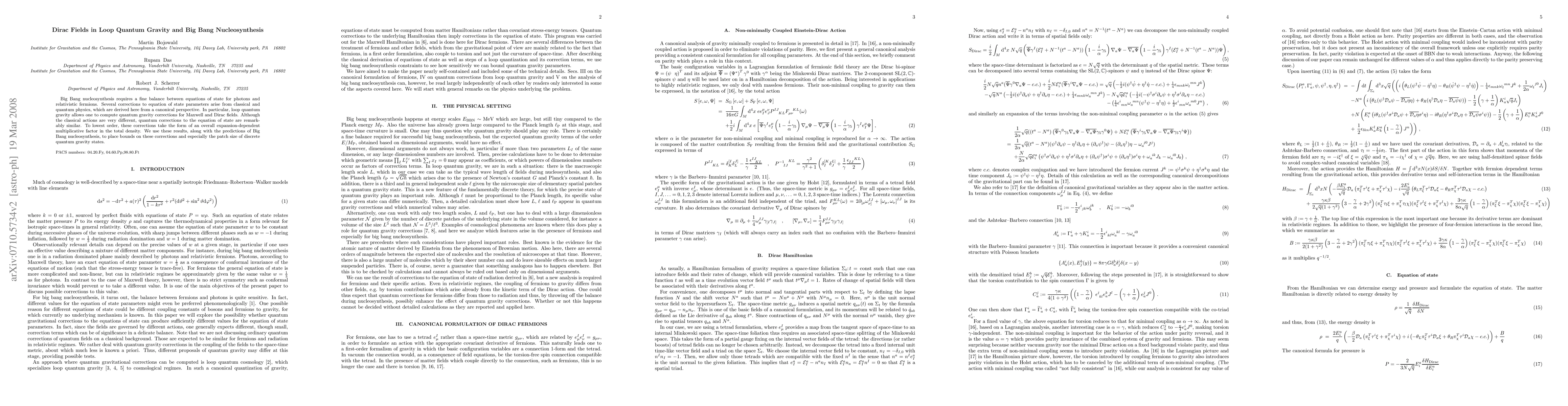 Researchers used loop quantum gravity to study Big Bang nucleosynthesis and found that quantum corrections to the equation of state for photons and fermions take a similar form, with bounds placed on these corrections based on predictions from Big Bang nucleosynthesis.