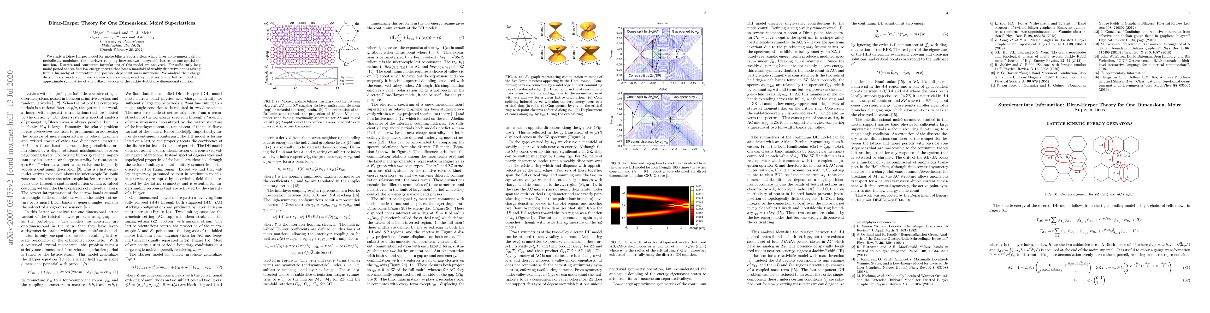 We study a Dirac Harper model for moir\'e bilayer superlattices where layer antisymmetric strain periodically modulates the interlayer coupling between two honeycomb lattices in one spatial dimension. Discrete and continuum formulations of this model are analyzed. For sufficiently long moir\'e period the we find low energy spectra that host a manifold of weakly dispersive bands arising from a hierarchy of momentum and position dependent mass inversions. We analyze their charge distributions, mode count and valley-coherence using exact symmetries of the lattice model and approximate symmetries of a four-flavor version of the Jackiw-Rebbi one dimensional solution.