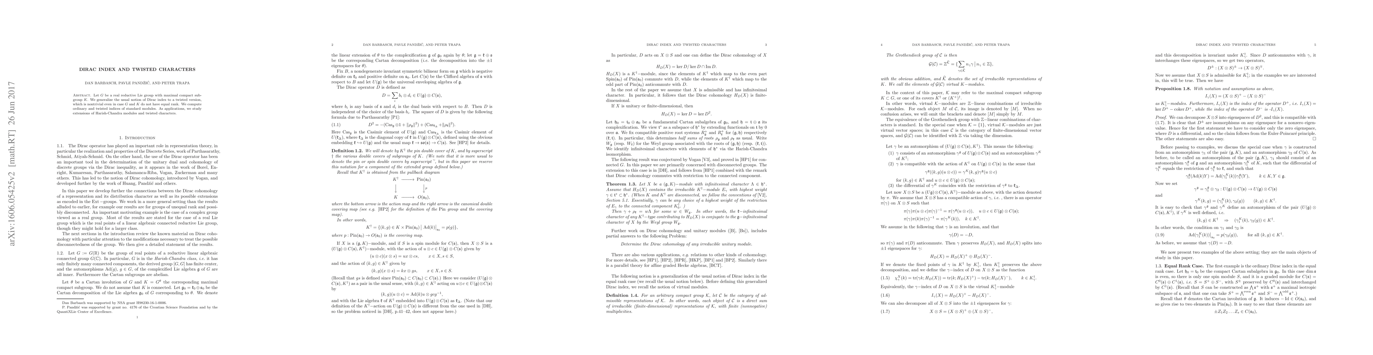 Let G be a real reductive Lie group with maximal compact sub- group K. We generalize the usual notion of Dirac index to a twisted version, which is nontrivial even in case G and K do not have equal rank. We compute ordinary and twisted indices of standard modules. As applications, we study extensions of Harish-Chandra modules and twisted characters.
