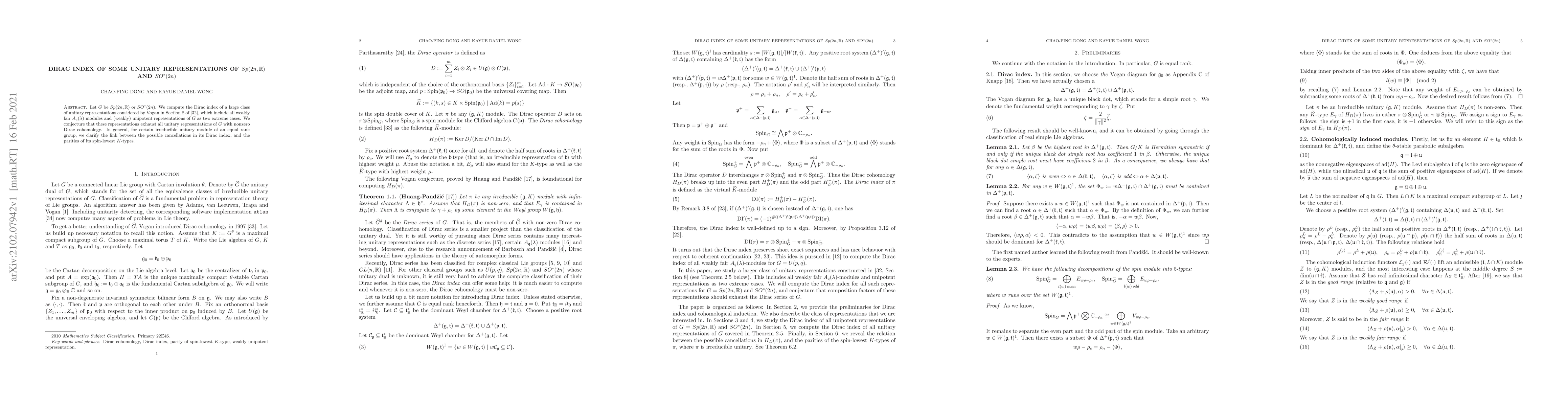 This paper computes the Dirac index for a broad class of unitary representations of $Sp(2n, \mathbb{R})$ and $SO^*(2n)$, including weakly fair $A_{\mathfrak{q}}(\lambda)$ modules and unipotent representations, and proposes they represent all unitary representations with nonzero Dirac cohomology. The study also explores the relationship between the Dirac index's cancellation and the parities of its spin-lowest $K$-types.