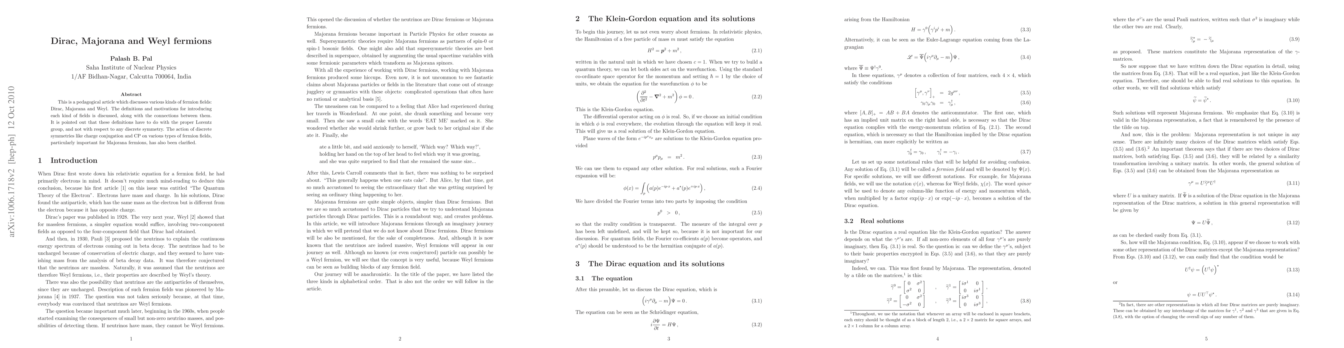 While the fundamental concepts are well-established, this paper offers a pedagogical and cohesive treatment, clarifying subtleties and connections between these fermion types, making it valuable for both students and researchers.