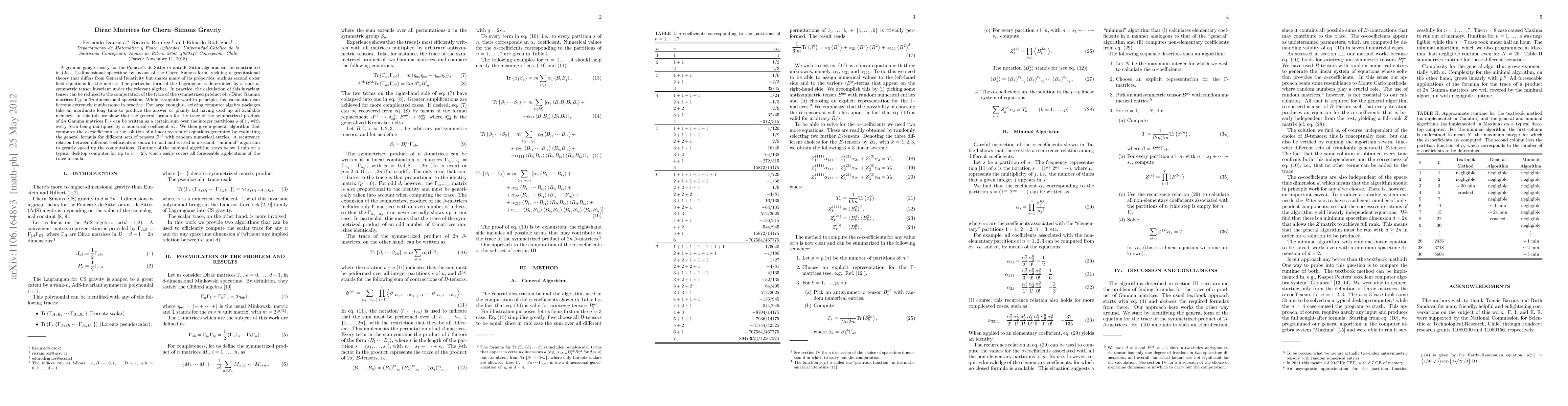 A genuine gauge theory for the Poincar\'e, de Sitter or anti-de Sitter algebras can be constructed in (2n-1)-dimensional spacetime by means of the Chern-Simons form, yielding a gravitational theory that differs from General Relativity but shares many of its properties, such as second order field equations for the metric. The particular form of the Lagrangian is determined by a rank n, symmetric tensor invariant under the relevant algebra. In practice, the calculation of this invariant tensor can be reduced to the computation of the trace of the symmetrized product of n Dirac Gamma matrices \Gamma_{ab} in 2n-dimensional spacetime. While straightforward in principle, this calculation can become extremely cumbersome in practice. For large enough n, existing computer algebra packages take an inordinate long time to produce the answer or plainly fail having used up all available memory. In this talk we show that the general formula for the trace of the symmetrized product of 2n Gamma matrices \Gamma_{ab} can be written as a certain sum over the integer partitions s of n, with every term being multiplied by a numerical coefficient \alpha_{s}. We then give a general algorithm that computes the \alpha-coefficients as the solution of a linear system of equations generated by evaluating the general formula for different sets of tensors B^{ab} with random numerical entries. A recurrence relation between different coefficients is shown to hold and is used in a second, "minimal" algorithm to greatly speed up the computations. Runtime of the minimal algorithm stays below 1 min on a typical desktop computer for up to n=25, which easily covers all foreseeable applications of the trace formula.