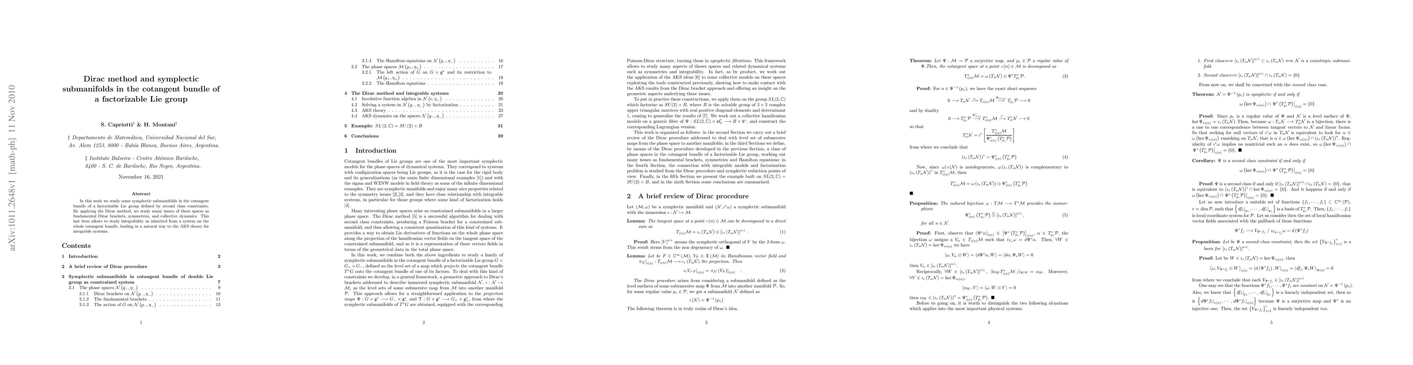This paper investigates symplectic submanifolds in the cotangent bundle of a factorizable Lie group, defined by second class constraints, using the Dirac method to explore fundamental Dirac brackets, symmetries, and collective dynamics, ultimately linking to the AKS theory for integrable systems.