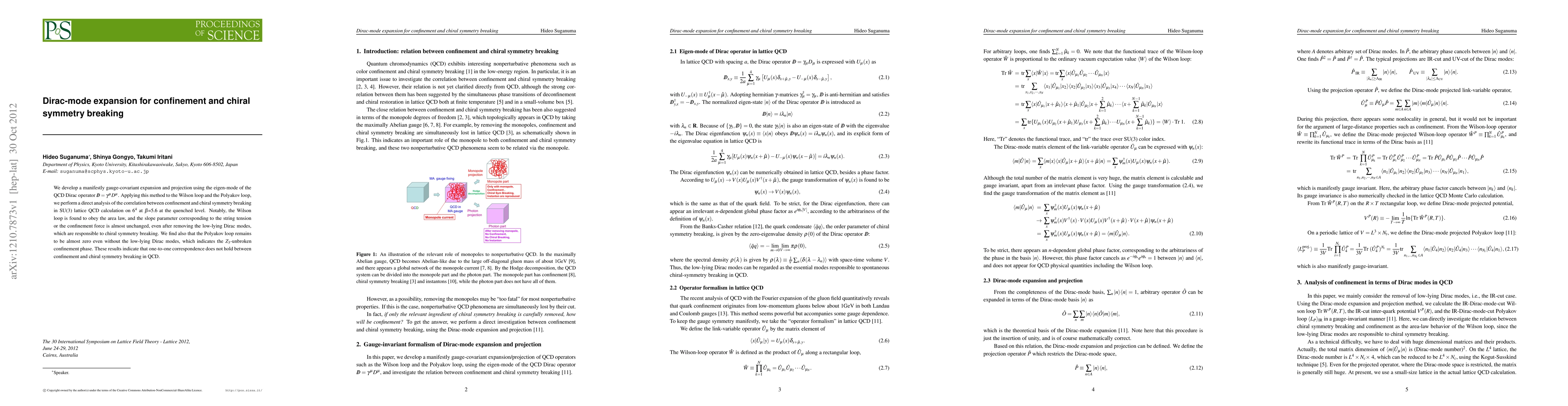 This paper introduces a gauge-covariant expansion using the eigen-modes of the QCD Dirac operator and applies it to analyze the relationship between confinement and chiral symmetry breaking in SU(3) lattice QCD. It finds that confinement remains intact despite removing modes responsible for chiral symmetry breaking, suggesting these phenomena are not directly correlated in QCD.
