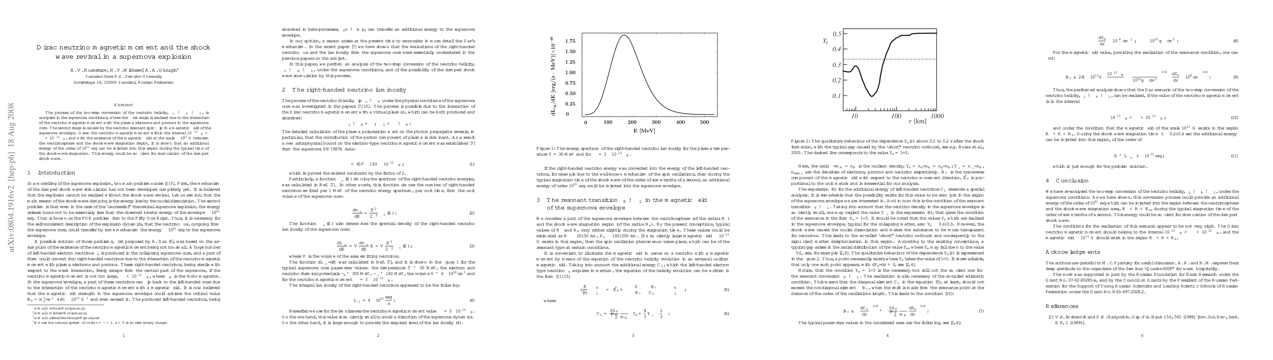 This paper analyzes the two-step conversion of neutrino helicity in supernova conditions, showing that a neutrino magnetic moment within a specific range can interact with the supernova core plasma and induce a resonant spin-flip in the envelope's magnetic field. This process can inject an additional energy of $10^{51}$ erg into the shock-wave stagnation region, potentially reviving the shock wave.
