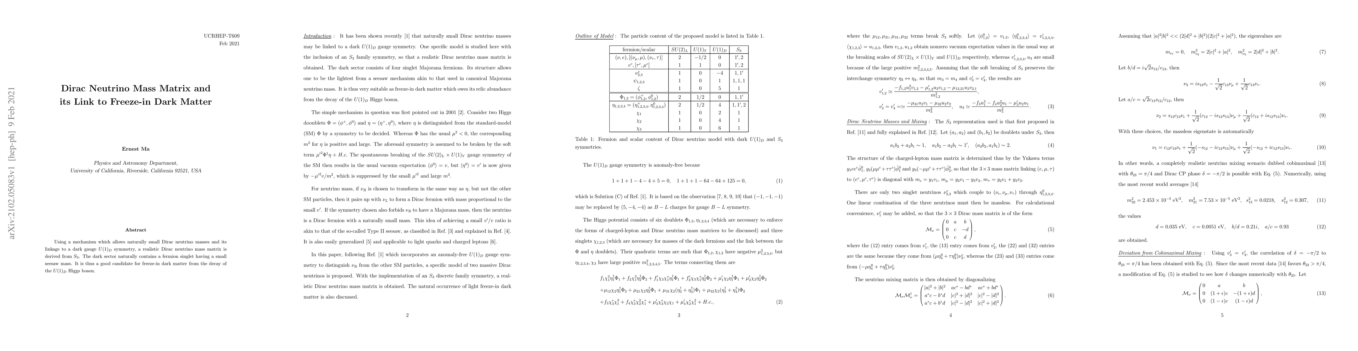 This paper derives a realistic Dirac neutrino mass matrix from $S_3$ symmetry, linking it to a dark gauge $U(1)_D$ symmetry, and proposes a small seesaw mass fermion singlet as a candidate for freeze-in dark matter from the decay of the $U(1)_D$ Higgs boson.