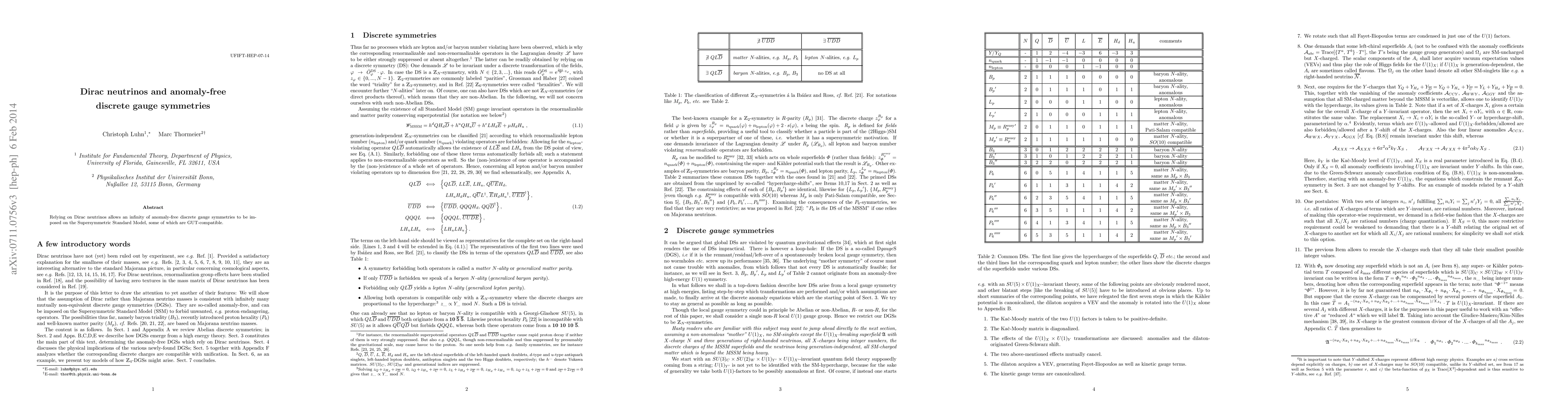 Summary: The paper explores how Dirac neutrinos enable the imposition of an infinite number of anomaly-free discrete gauge symmetries on the Supersymmetric Standard Model, including some that are compatible with Grand Unified Theories (GUTs).