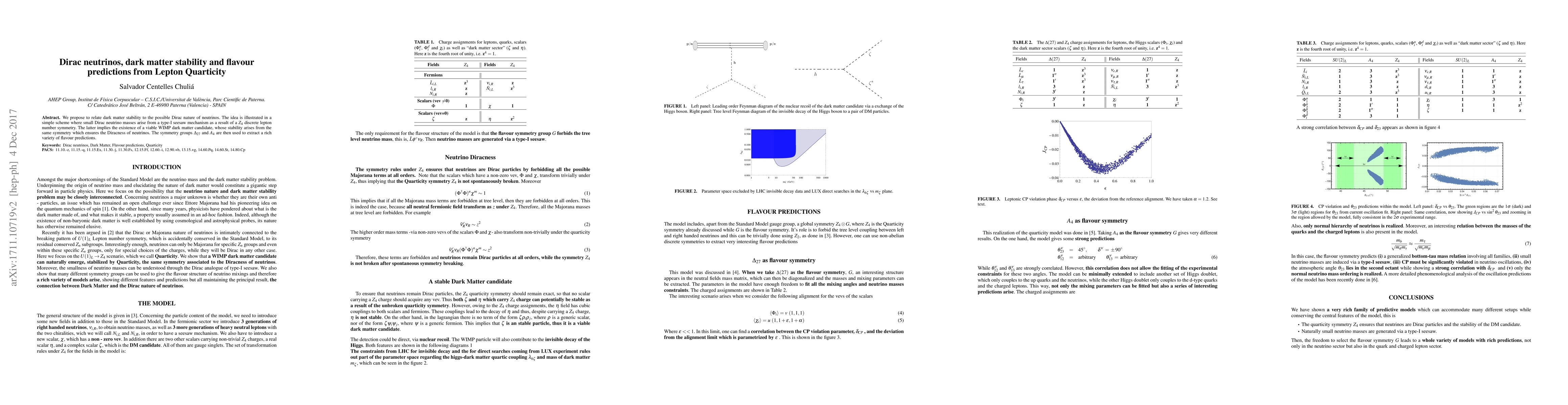 This paper proposes a connection between Dirac neutrinos and dark matter stability, illustrating it through a $Z_4$ discrete lepton number symmetry that generates small Dirac neutrino masses via a type-I seesaw mechanism, and identifies a WIMP dark matter candidate stabilized by the same symmetry. It uses $\Delta_{27}$ and $A_4$ symmetry groups to derive diverse flavour predictions.