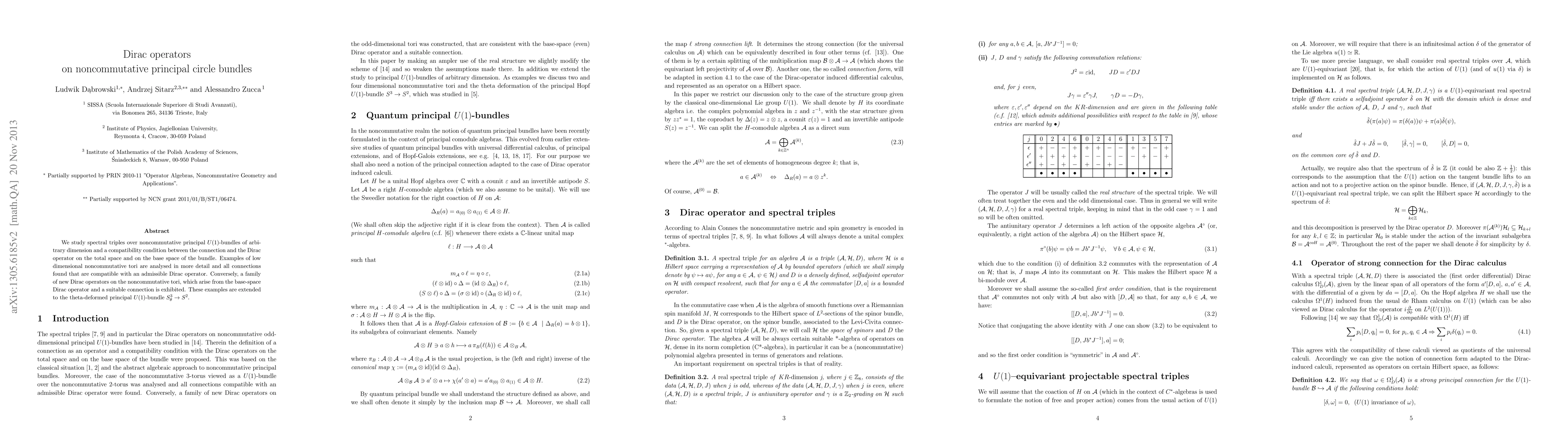 The paper introduces a compatibility condition for connections and Dirac operators on noncommutative principal U(1)-bundles, providing explicit examples and extending the analysis to theta-deformed bundles, contributing to the theoretical framework of spectral triples in noncommutative geometry.