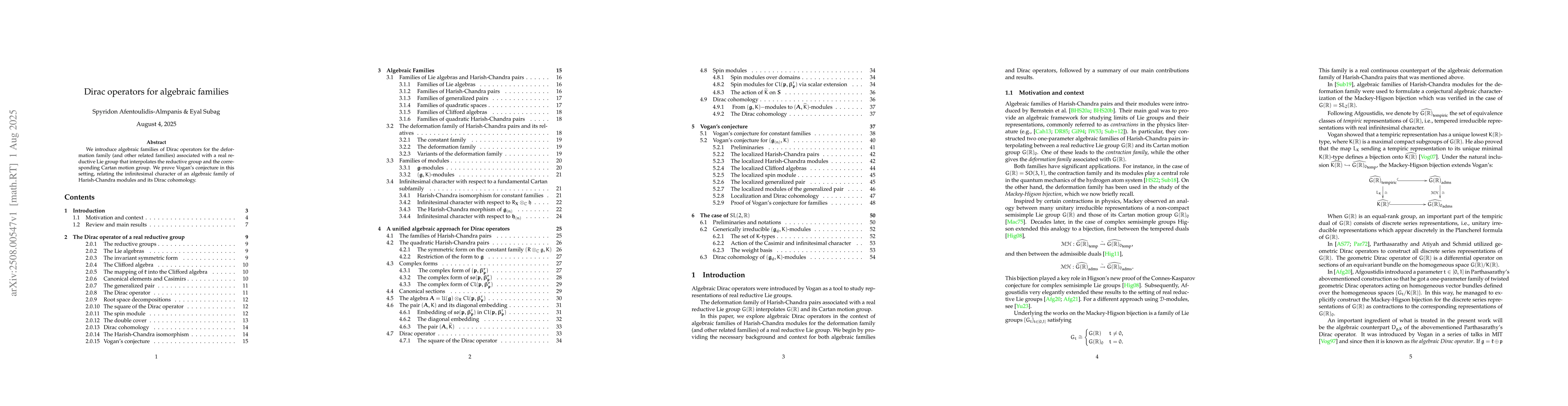 We introduce algebraic families of Dirac operators for the deformation family (and other related families) associated with a real reductive Lie group that interpolates the reductive group and the corresponding Cartan motion group. We prove Vogan's conjecture in this setting, relating the infinitesimal character of an algebraic family of Harish-Chandra modules and its Dirac cohomology.