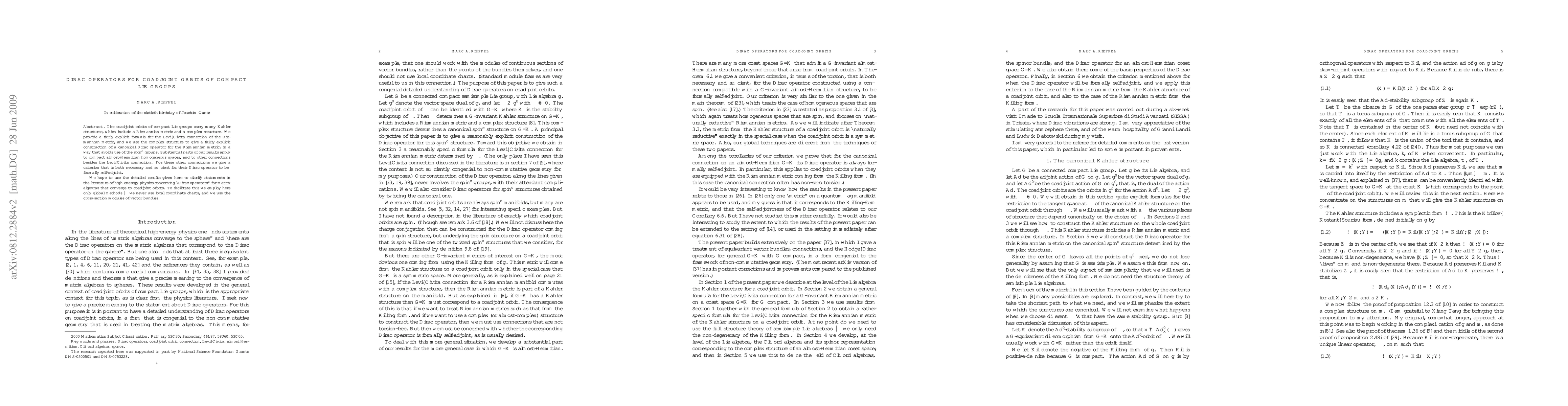 This paper constructs a canonical Dirac operator for the Riemannian metric on coadjoint orbits of compact Lie groups using their Kähler structures, avoiding the use of Spin^c groups. It also provides a criterion for the Dirac operator's self-adjointness for various connections, aiming to clarify related high-energy physics concepts.