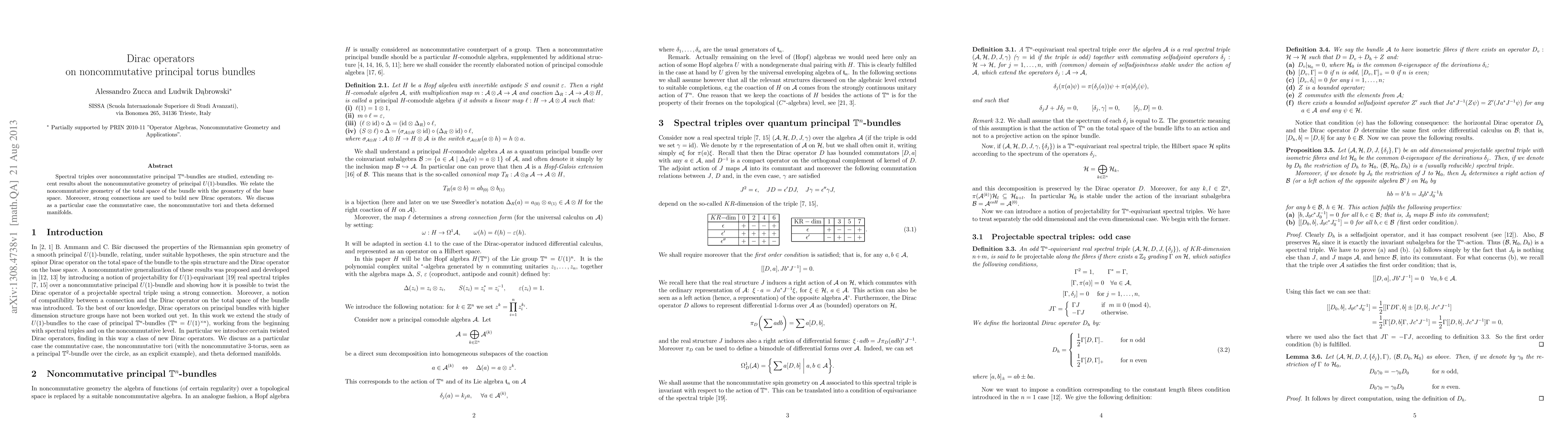 This paper investigates spectral triples on noncommutative principal torus bundles, extending previous studies on principal U(1)-bundles. It establishes a relationship between the geometry of the bundle's total space and the base space, utilizing strong connections to construct new Dirac operators, with a focus on commutative cases, noncommutative tori, and theta deformed manifolds.