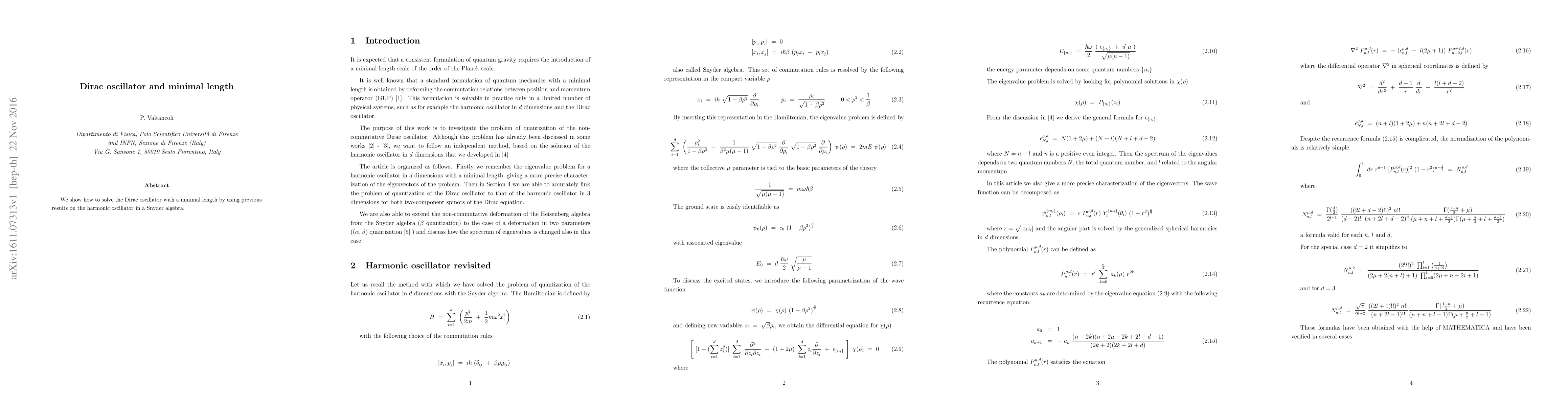 Summary: This paper solves the Dirac oscillator incorporating a minimal length, utilizing results from the harmonic oscillator in Snyder algebra to achieve the solution. The approach highlights the interplay between quantum mechanics and minimal length considerations.