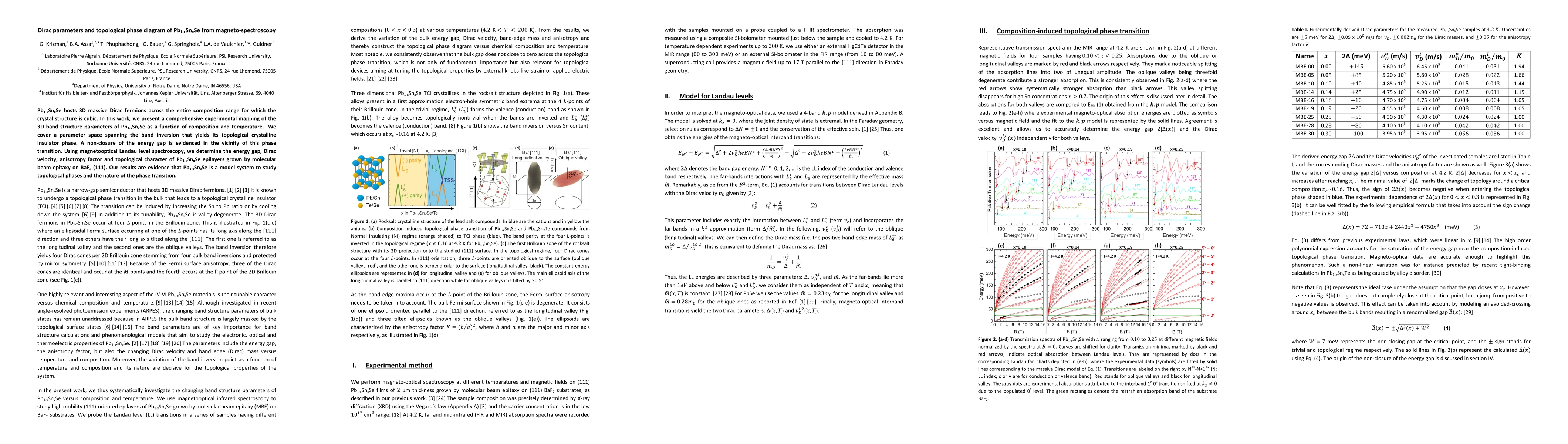 This research maps the 3D band structure parameters of Pb1-xSnxSe using magnetooptical spectroscopy, revealing its topological crystalline insulator phase and the non-closure of the energy gap near the phase transition. Pb1-xSnxSe is identified as a model system for studying topological phases and the nature of the phase transition.
