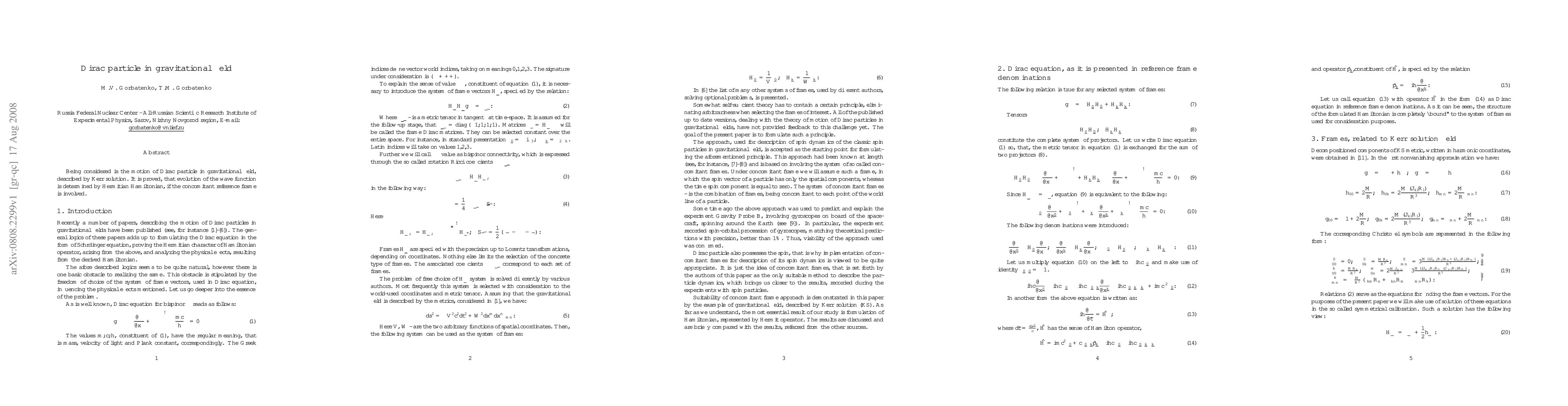 Being considered is the motion of Dirac particle in gravitational field, described by Kerr solution. It is proved, that evolution of the wave function is determined by Hermitian Hamiltonian, if the concomitant reference frame is involved.