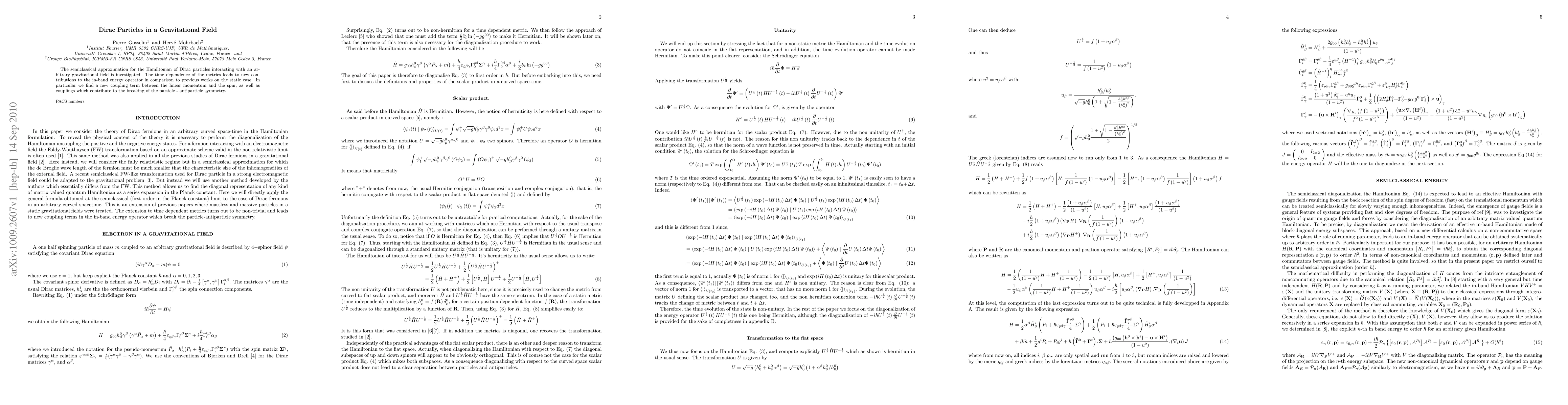 The semiclassical approximation for the Hamiltonian of Dirac particles interacting with an arbitrary gravitational field is investigated. The time dependence of the metrics leads to new contributions to the in-band energy operator in comparison to previous works on the static case. In particular we find a new coupling term between the linear momentum and the spin, as well as couplings which contribute to the breaking of the particle - antiparticle symmetry.