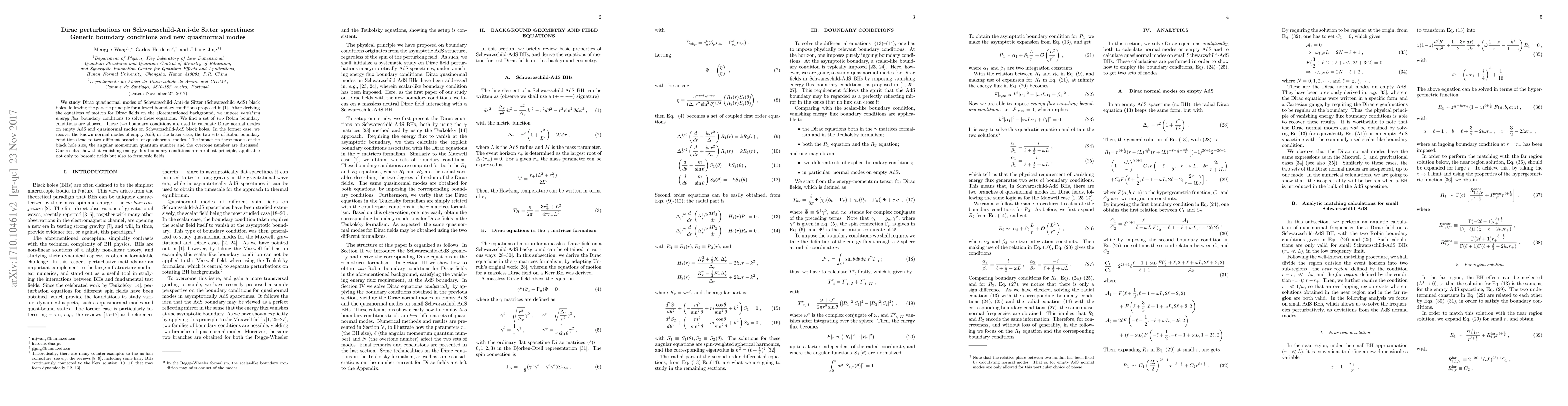This paper investigates Dirac quasinormal modes in Schwarzschild-AdS spacetimes, deriving equations of motion and employing Robin boundary conditions. It discovers two distinct branches of quasinormal modes and confirms the robustness of vanishing energy flux boundary conditions for fermionic fields.