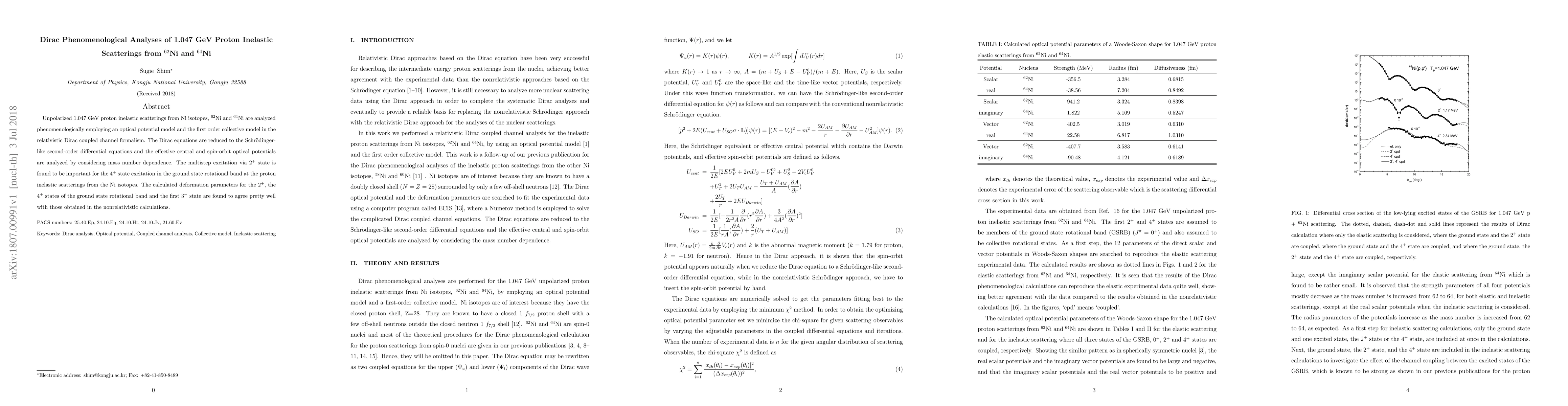 Unpolarized 1.047 GeV proton inelastic scatterings from Ni isotopes, $^{62}$Ni and $^{64}$Ni are analyzed phenomenologically employing an optical potential model and the first order collective model in the relativistic Dirac coupled channel formalism. The Dirac equations are reduced to the Schr\"{o}dinger-like second-order differential equations and the effective central and spin-orbit optical potentials are analyzed by considering mass number dependence. The multistep excitation via $2^+$ state is found to be important for the $4^+$ state excitation in the ground state rotational band at the proton inelastic scatterings from the Ni isotopes. The calculated deformation parameters for the 2$^+$, the 4$^+$ states of the ground state rotational band and the first 3$^-$ state are found to agree pretty well with those obtained in the nonrelativistic calculations.