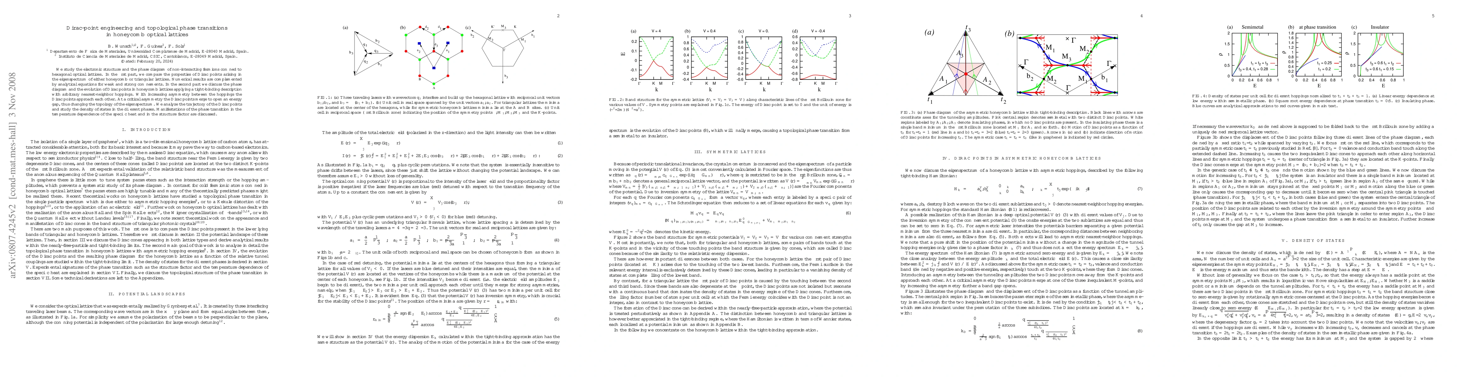 This paper investigates the electronic structure and topological phase transitions in non-interacting fermions in hexagonal optical lattices, comparing Dirac points in honeycomb and triangular lattices. It finds that increasing asymmetry between hoppings leads to a merging of Dirac points, opening an energy gap and changing the topological phase, with implications for specific heat and structure factor.