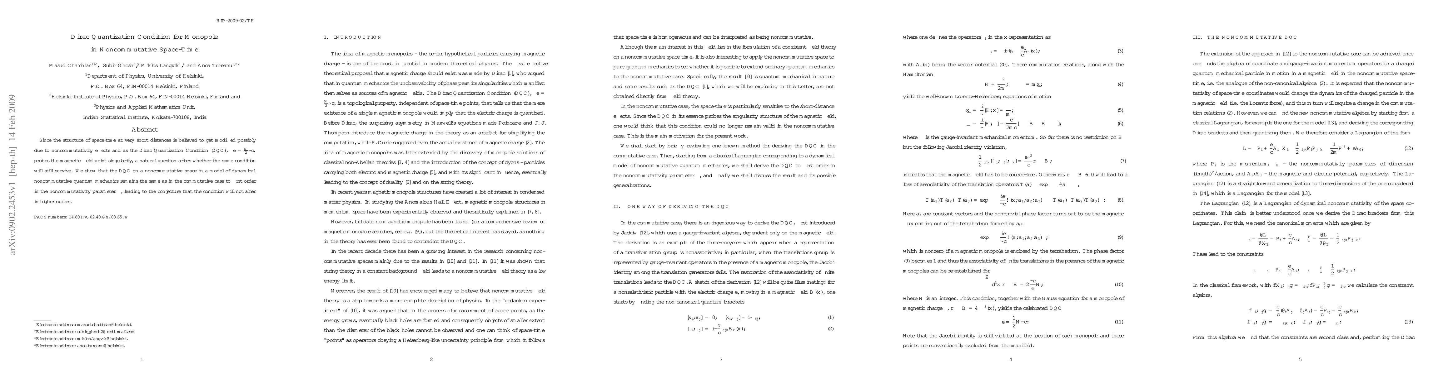 Researchers investigated whether the Dirac Quantization Condition remains unchanged in noncommutative space-time, finding it to be true to first order in a small noncommutativity parameter, leading to a conjecture that higher-order effects may preserve the condition.