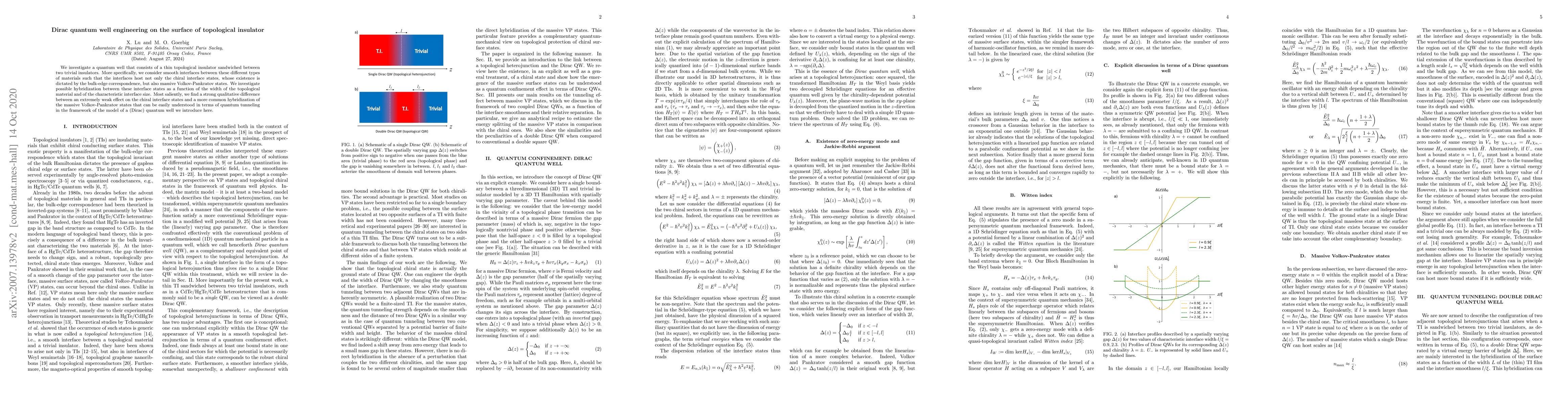 We investigate a quantum well that consists of a thin topological insulator sandwiched between two trivial insulators. More specifically, we consider smooth interfaces between these different types of materials such that the interfaces host not only the chiral interface states, whose existence is dictated by the bulk-edge correspondence, but also massive Volkov-Pankratov states. We investigate possible hybridization between these interface states as a function of the width of the topological material and of the characteristic interface size. Most saliently, we find a strong qualitative difference between an extremely weak effect on the chiral interface states and a more common hybridization of the massive Volkov-Pankratov states that can be easily understood in terms of quantum tunneling in the framework of the model of a (Dirac) quantum well we introduce here.