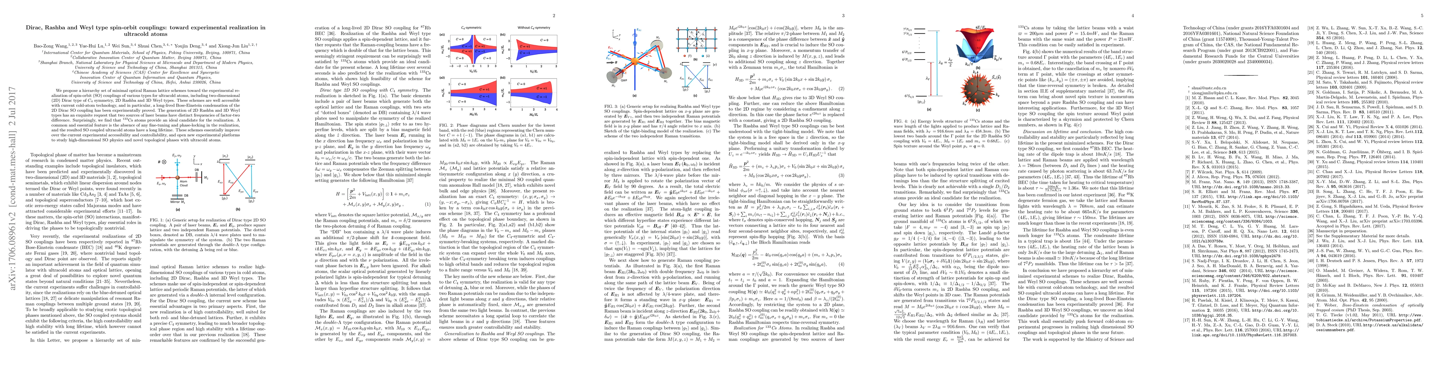 This paper proposes optical Raman lattice schemes to realize Dirac, Rashba, and Weyl spin-orbit couplings in ultracold atoms, emphasizing the accessibility with current technology and the long lifetime of the resulting states. It highlights the suitability of $^{133}$Cs atoms for these experiments and suggests new experimental platforms for studying high-dimensional spin-orbit physics and topological phases.