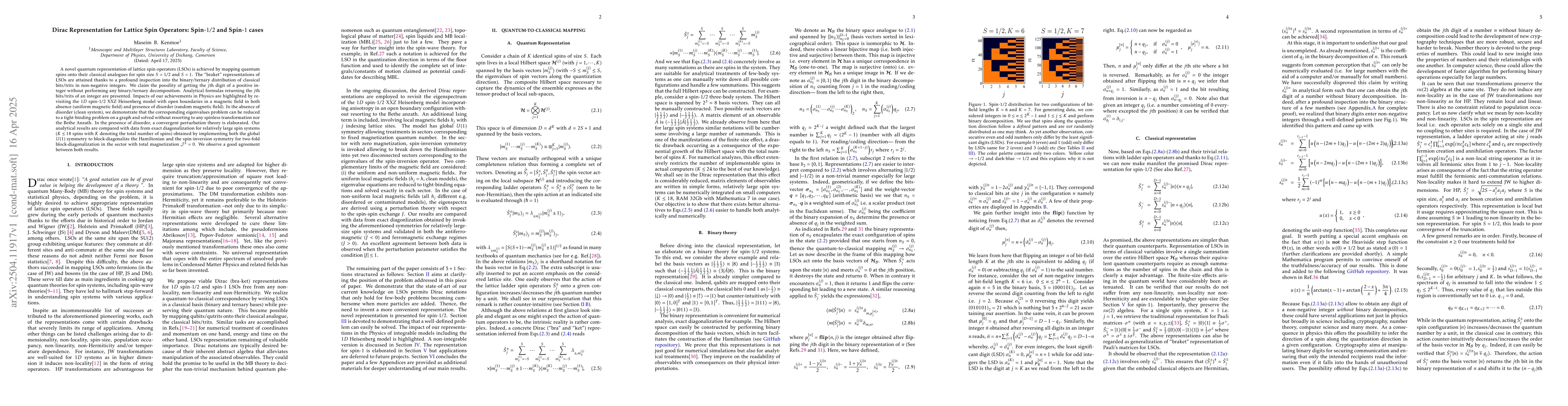 The research introduces a novel quantum representation of lattice spin operators (LSOs) by mapping quantum spins onto classical analogues for spin sizes $S=1/2$ and $S=1$. This is achieved through an analysis of binary/ternary distribution of classical bits/trits in non-negative integers, allowing for the retrieval of the $j$th digit of a positive integer without decomposition.