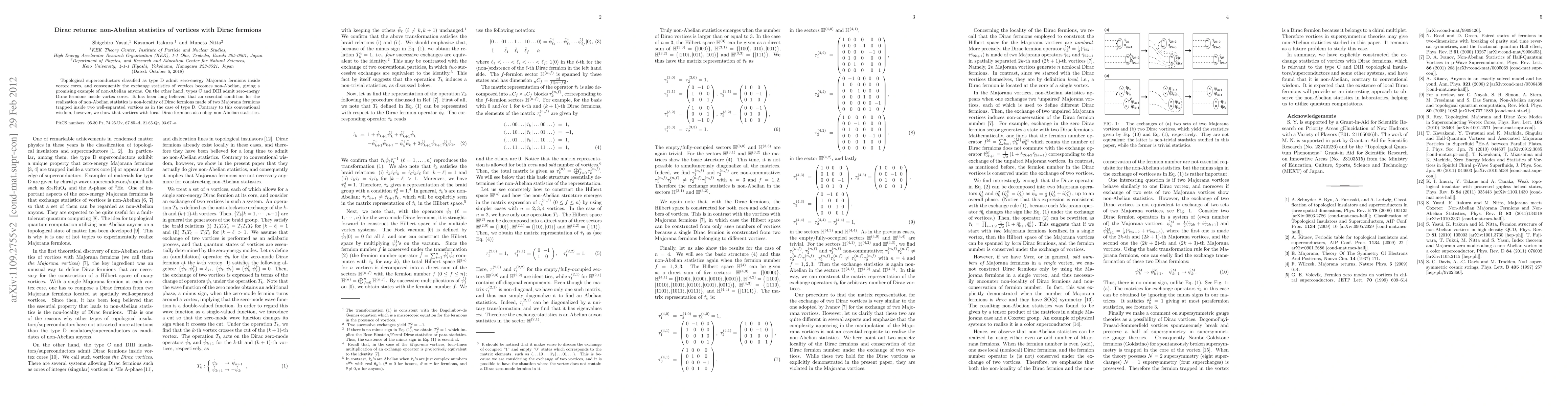 This research reveals that vortices in topological superconductors with Dirac fermions exhibit non-Abelian statistics contrary to the belief that only non-local Dirac fermions contribute to such statistics. This finding expands the potential for realizing non-Abelian anyons in topological systems.