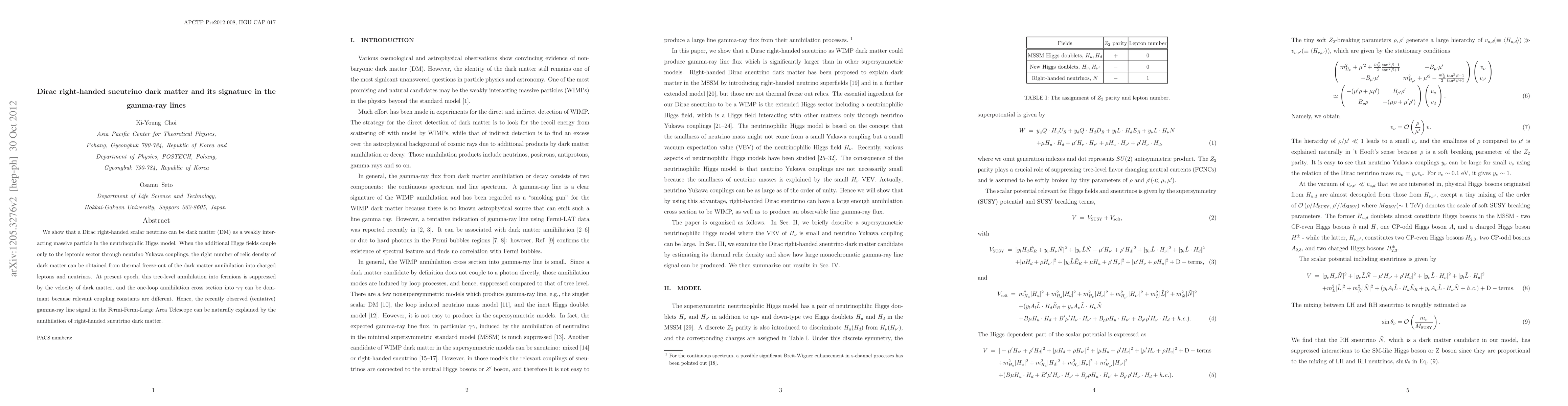 We show that a Dirac right-handed scalar neutrino can be weakly interacting massive particle in the neutrinophilic Higgs model. When the additional Higgs fields couple only to the leptonic sector through neutrino Yukawa couplings, the right number of relic density of dark matter can be obtained from thermal freeze-out of the dark matter annihilation into charged leptons and neutrinos. At present, this annihilation is suppressed by the velocity of dark matter. However one-loop annihilation cross section into $\gamma\gamma$ can be larger than that of the helicity suppressed annihilation into fermions, because relevant coupling constants are different. Hence, gamma-ray line signal which might have been observed in the Fermi-LAT is also able to be explained by its annihilation.
