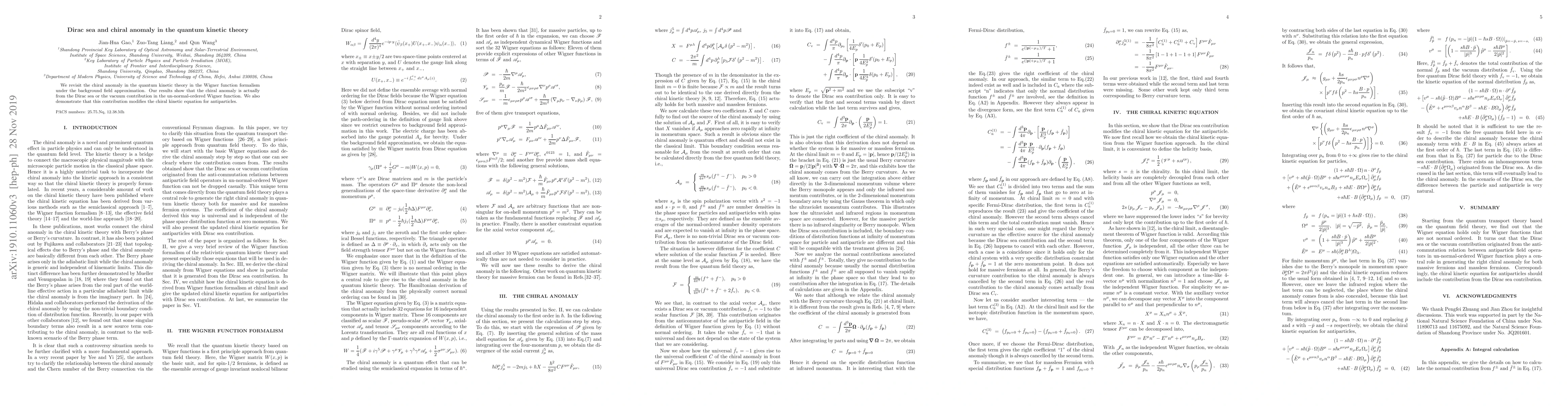 Summary: This study reveals that the chiral anomaly in quantum kinetic theory originates from the Dirac sea contribution in the un-normal-ordered Wigner function. It shows how this vacuum effect modifies the chiral kinetic equation for antiparticles under the background field approximation.